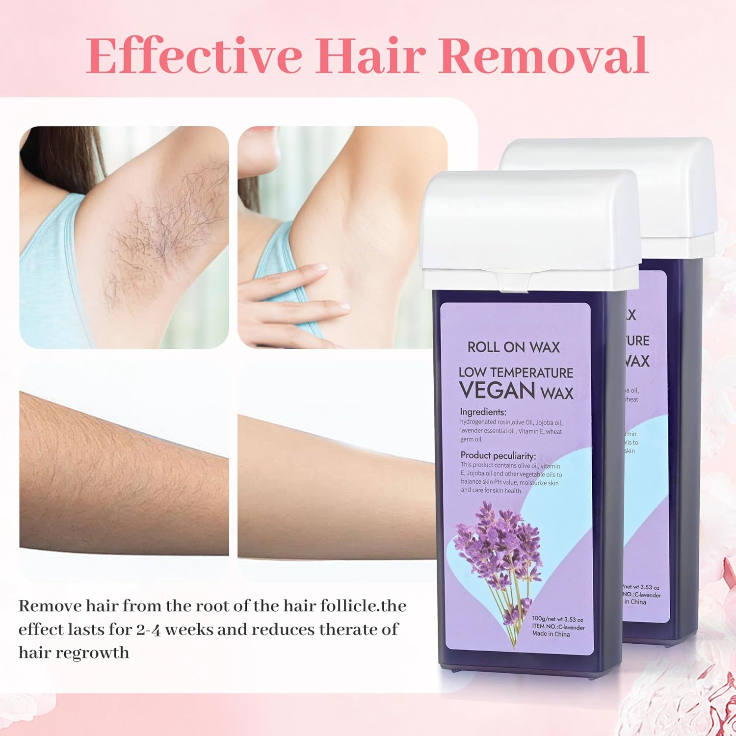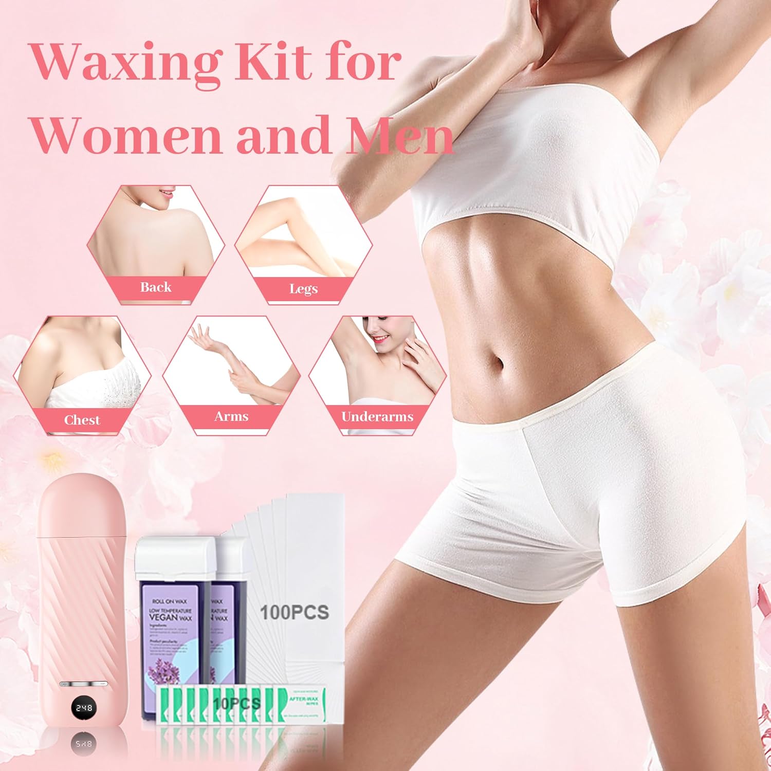 Roll on Wax Kit for Hair Removal, Digital Wax Roller Kit, Lavender Roller Waxing Kit, Home Waxing Kit for Women and Men(Pink)