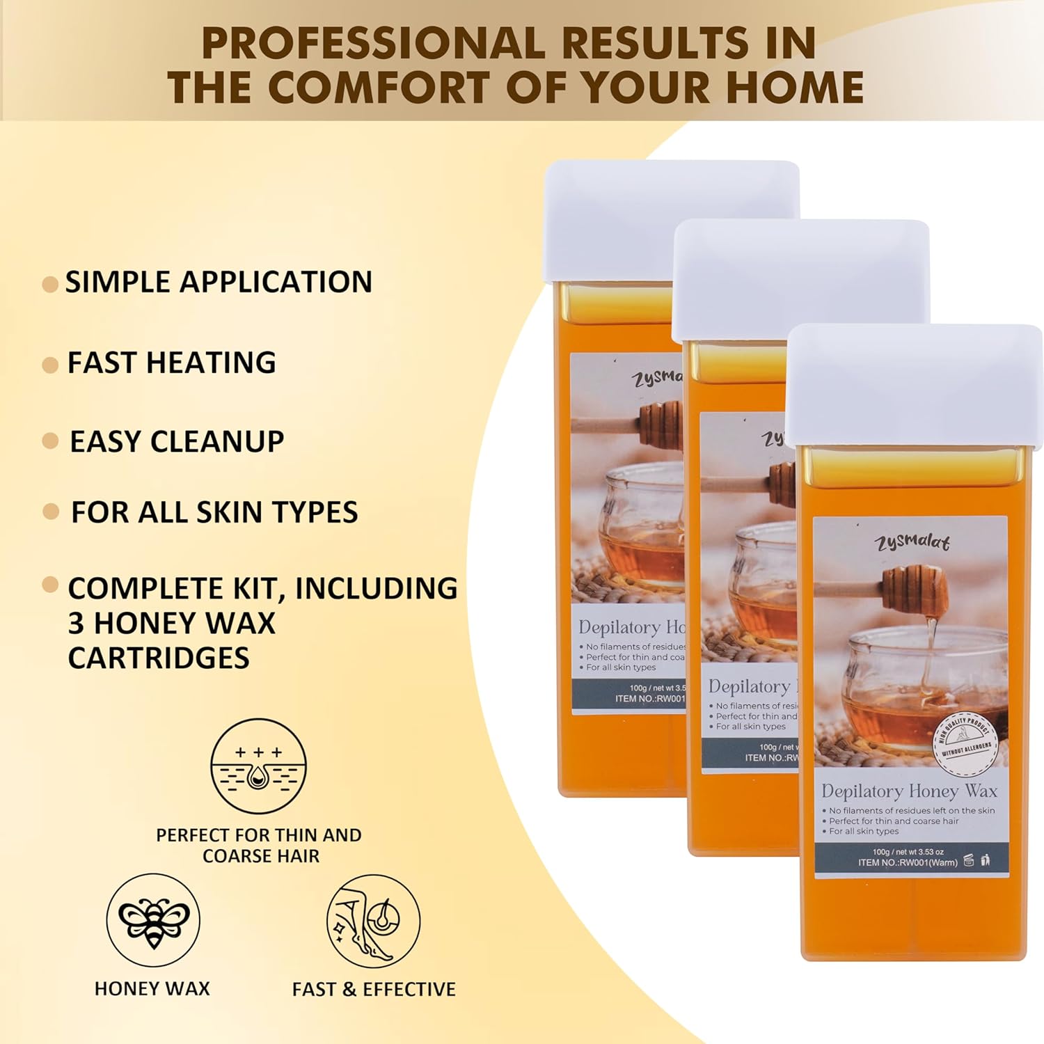 Three Refills – Our kit includes not one, not two, but three honey wax cartridges! Each cartridge is packed with premium-quality wax, ensuring you have more than enough for all your hair removal needs.