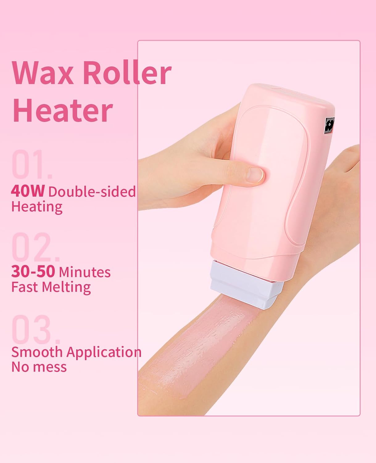 Roll On Wax Kit for Women: At-home Waxing Kit with Wax Roller Rose & Honey Roll-On Wax (3Pcs) for Sensitive Skin Hair Removal