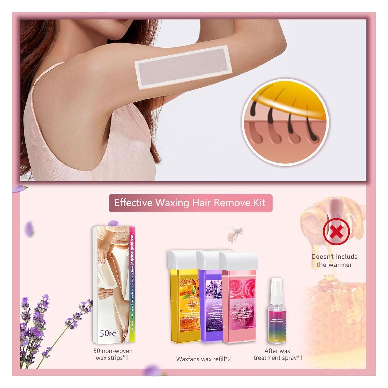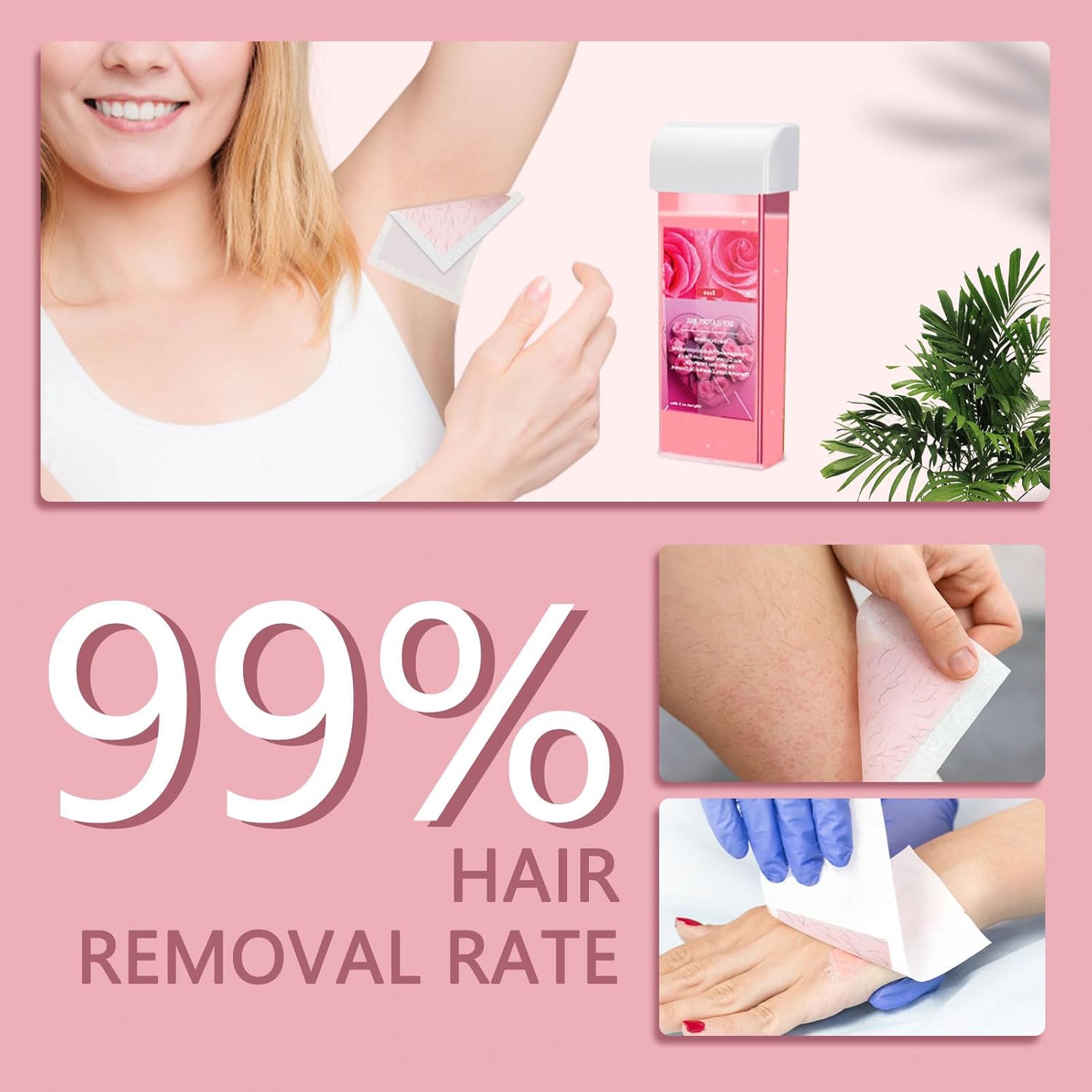 Roll On Wax Kit, Hawcay Depilatory Wax For Sensitive Skin, Waxing Kit For Women And Men At Home, Honey And Rose and Lavender Wax Roller For Larger Areas Of The Body