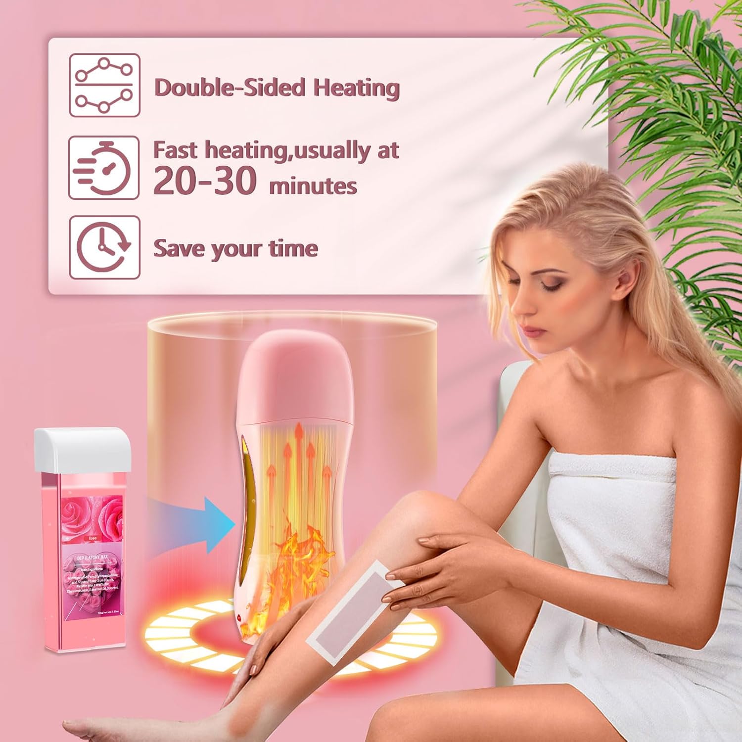 ✅Easy to Use Roller Wax Kit: The roll on wax warmer kit can be used for hair removal in all areas of the body, but it is best for waxing larger areas. Remove unwanted hair easily, quickly, and conveniently. [💝Note] Conduct a temperature and skin test before depilation to avoid scalding and adverse reactions.