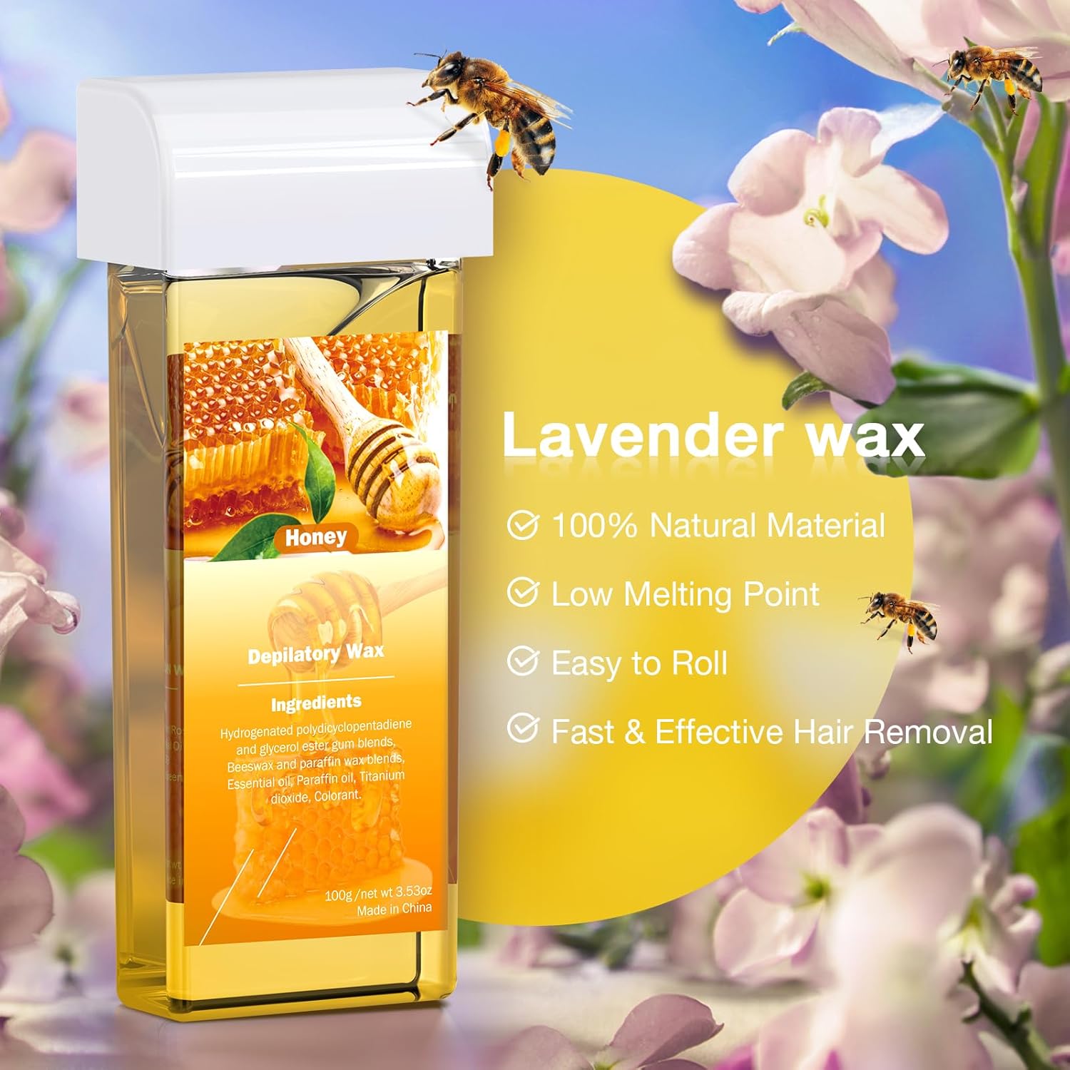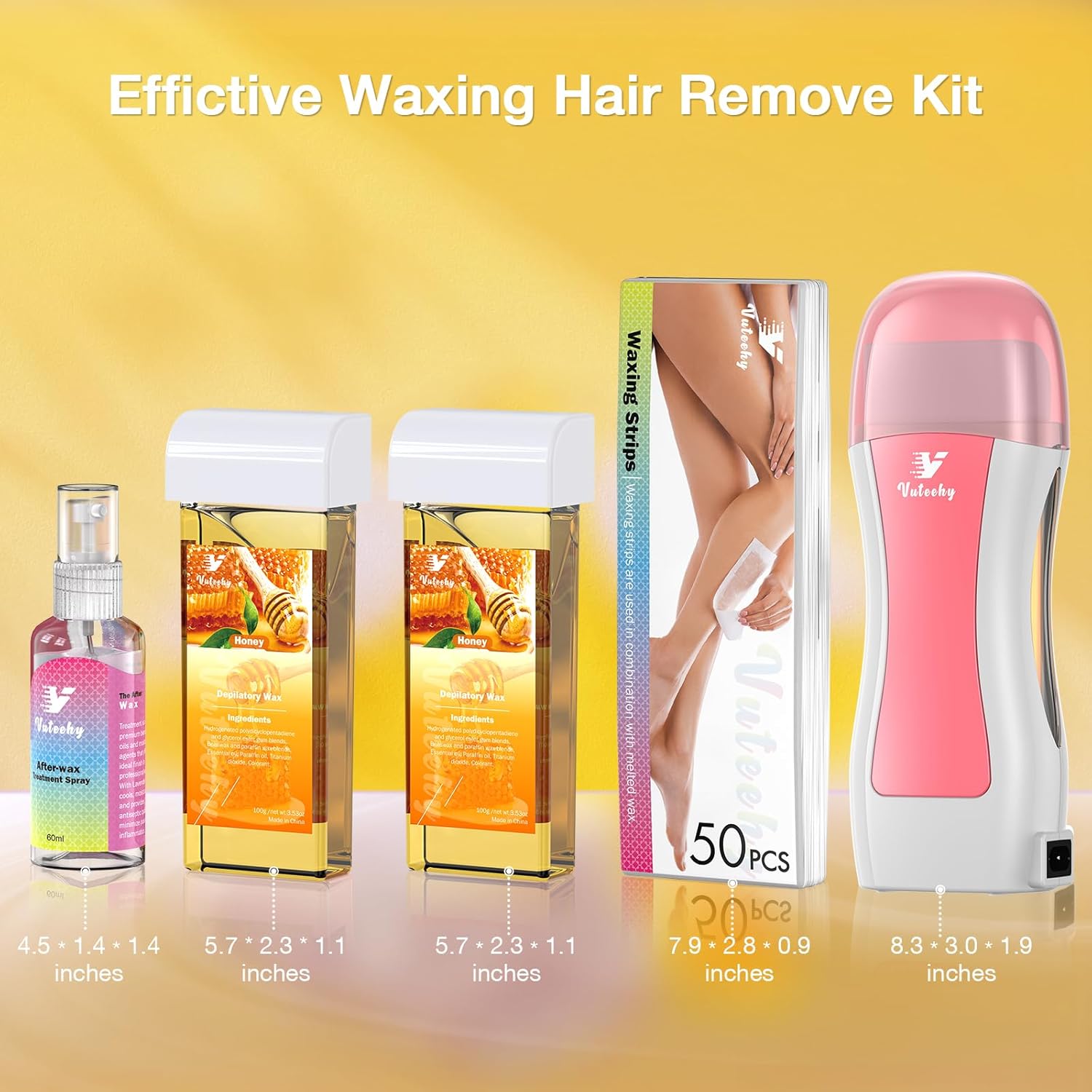 Roll on Wax Kit, Waxing Kit for Women and Men, Wax Roller Waxing Kit for All Skin Types, Roll on Waxing Kit for Hair Removal, with 2 Soft Honey Wax Cartridges and 50 Pcs Wax Strips