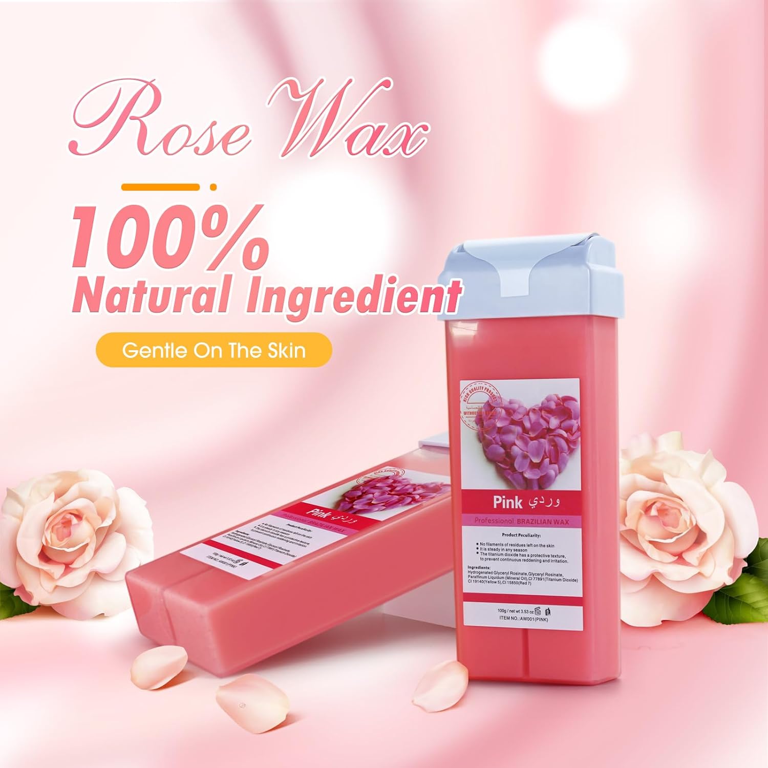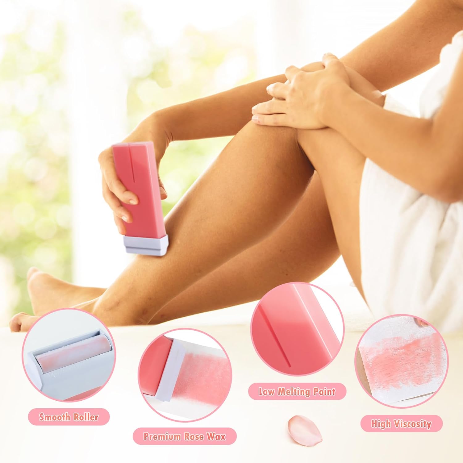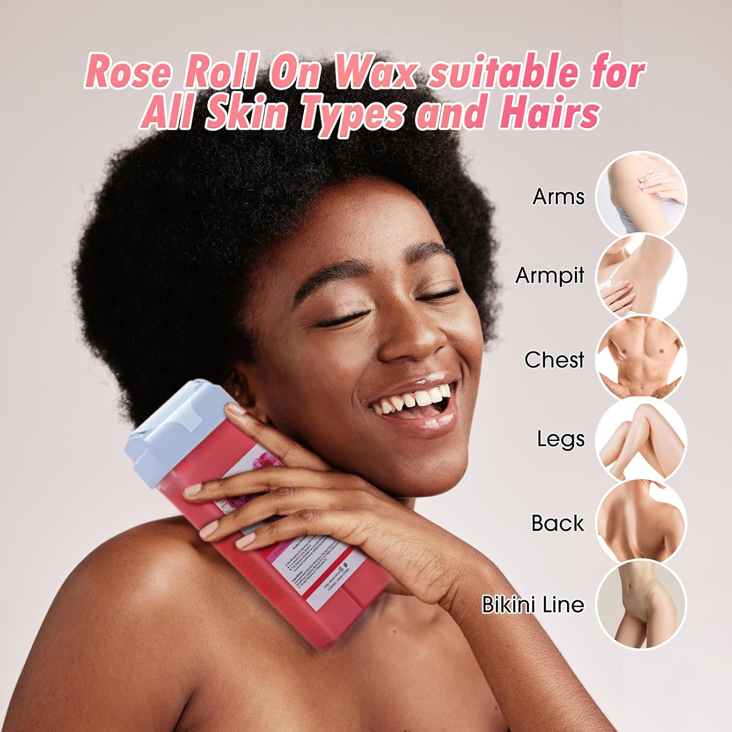 Wax Roller Kit for Hair Removal: The rose soft wax roller has low melting point, fast melting speed. Rose wax can grasp the hair from the root, effective for hair removal. Keeps skin smooth and bright for 4-6 weeks. Waxing kit for travel or at home.