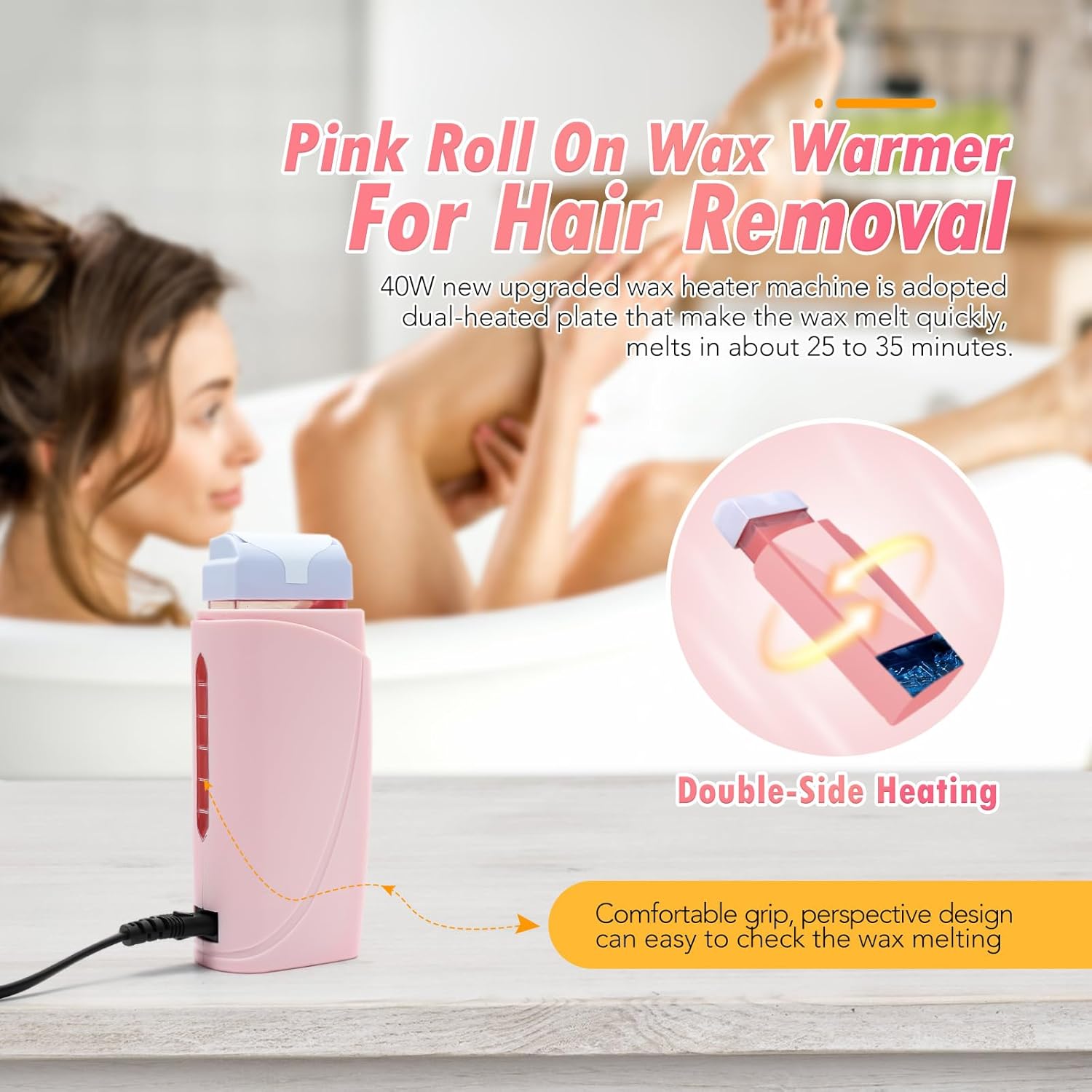 Roll On Wax Warmer for Hair Removal: Pink 40W wax heater machine adopts dual-heated plate that makes the wax melt quickly. Melting wax takes about 20-30 mins, save time and money. It’s easy to observe the wax condition through the perspective slot.