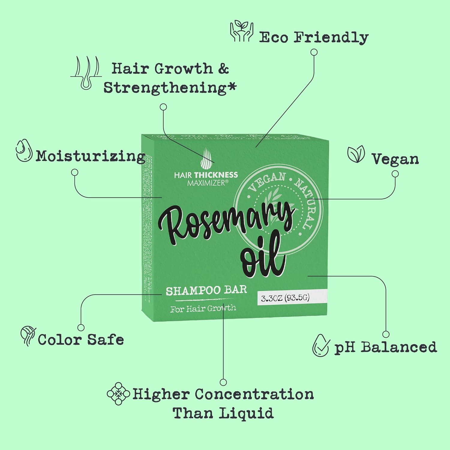 Rosemary Oil Shampoo Bar for Hair Growth, Strengthening. With Rice Protein, Jojoba, Castor Oil. Eco Friendly, Vegan. Color Safe, pH Balanced. No Harsh Chemicals. Higher Concentration Than Liquid