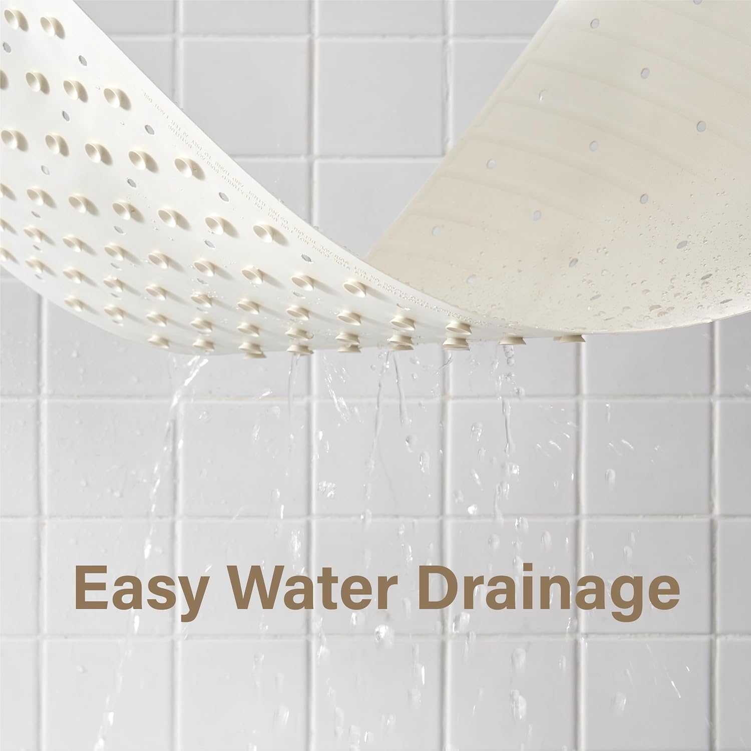Rubber Bathtub Mat, Extra Long Non-Slip Shower Tub Mat, 39×16 Inch, Bath Tub Floor Mat with Suction Cups and Drainage Holes, Ivory White