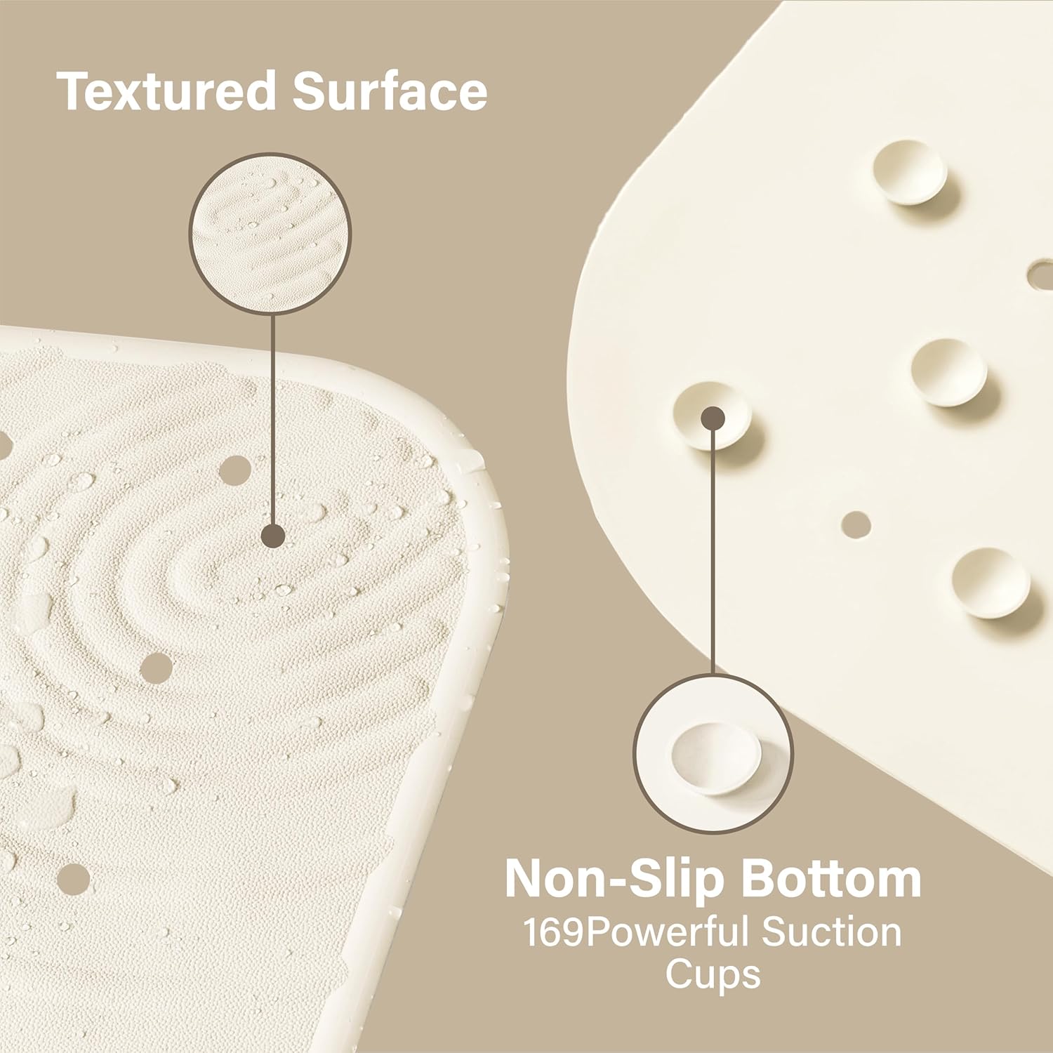 Suction Cups & Non-Slip: The bathtub mat measures 39×16 inches and has 169 powerful suction cups throughout the bottom of the mat to keep the mat firmly in place. Textured surface provides non-slip protection. Suitable for bathtubs, shower or bathroom floors.