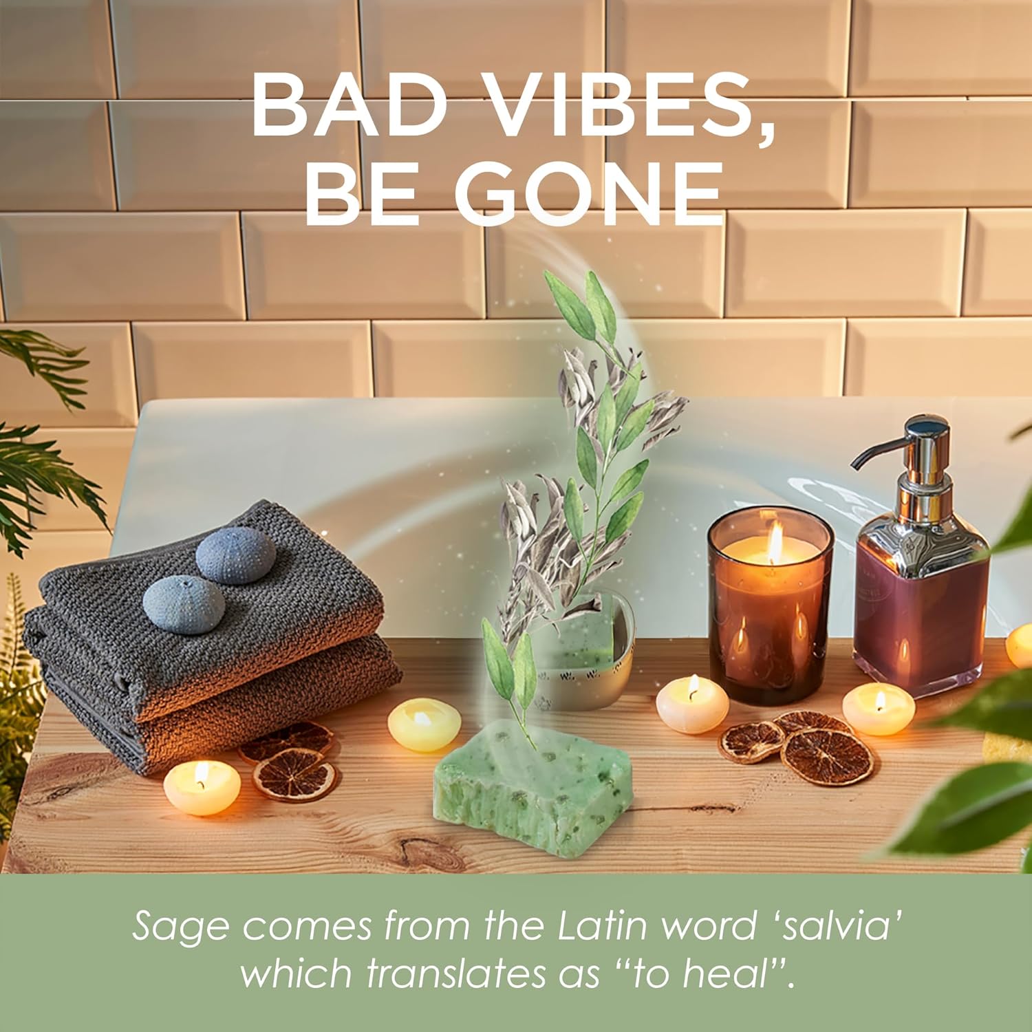 SMUDGE AWAY – Our 3-pack pure sage bath soap is the ultimate herb bath to cleanse your energy. Sage comes from the Latin word ‘salvia’ which translates as “to heal”. The practice of using Sage for energy purification began with the Native Americans. As yet, spiritual healers and shamans use it as a warder of evil and harmonizer of the spirit.