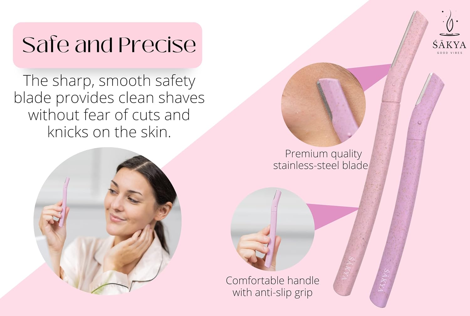 Sakya Biodegradable Women’s Dermaplaning Tool – Dermaplane Facial Sensitive Skin Hair Removal Face Razor, Twinkle Blade for Eyebrows & Peach Fuzz – Sonic