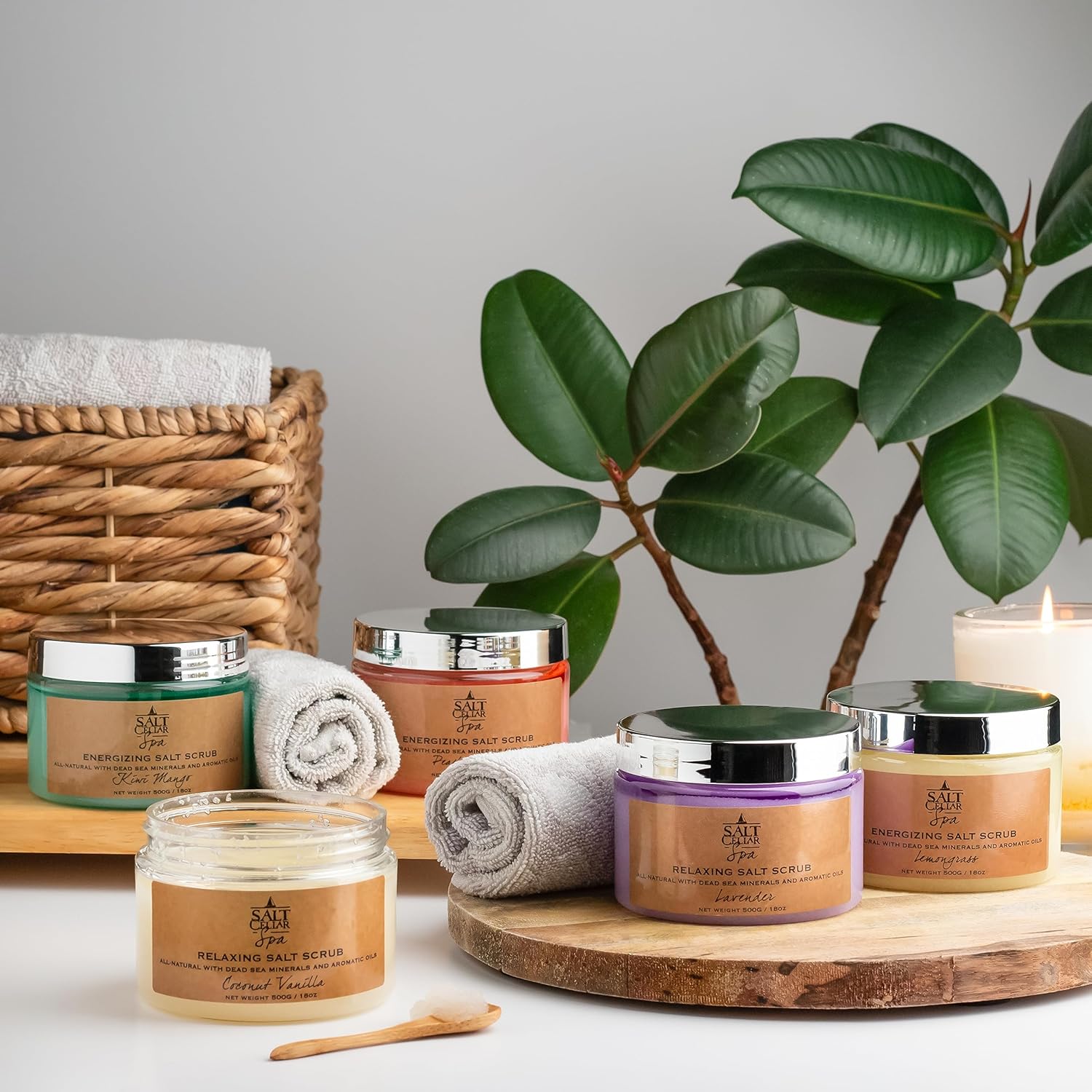 Salt Cellar Spa Energizing Lemongrass Salt Scrub – Awaken Your Skin with Dead Sea Minerals – Revive, Refresh, and Rejuvenate – Made in Israel, Cruelty-Free, 18 oz.