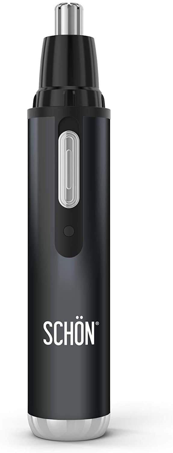 SCHON Stainless Steel 4-in-1 Nose, Eyebrow & Facial Hair Trimmer. Rechargeable with Soft Carry Bag Included