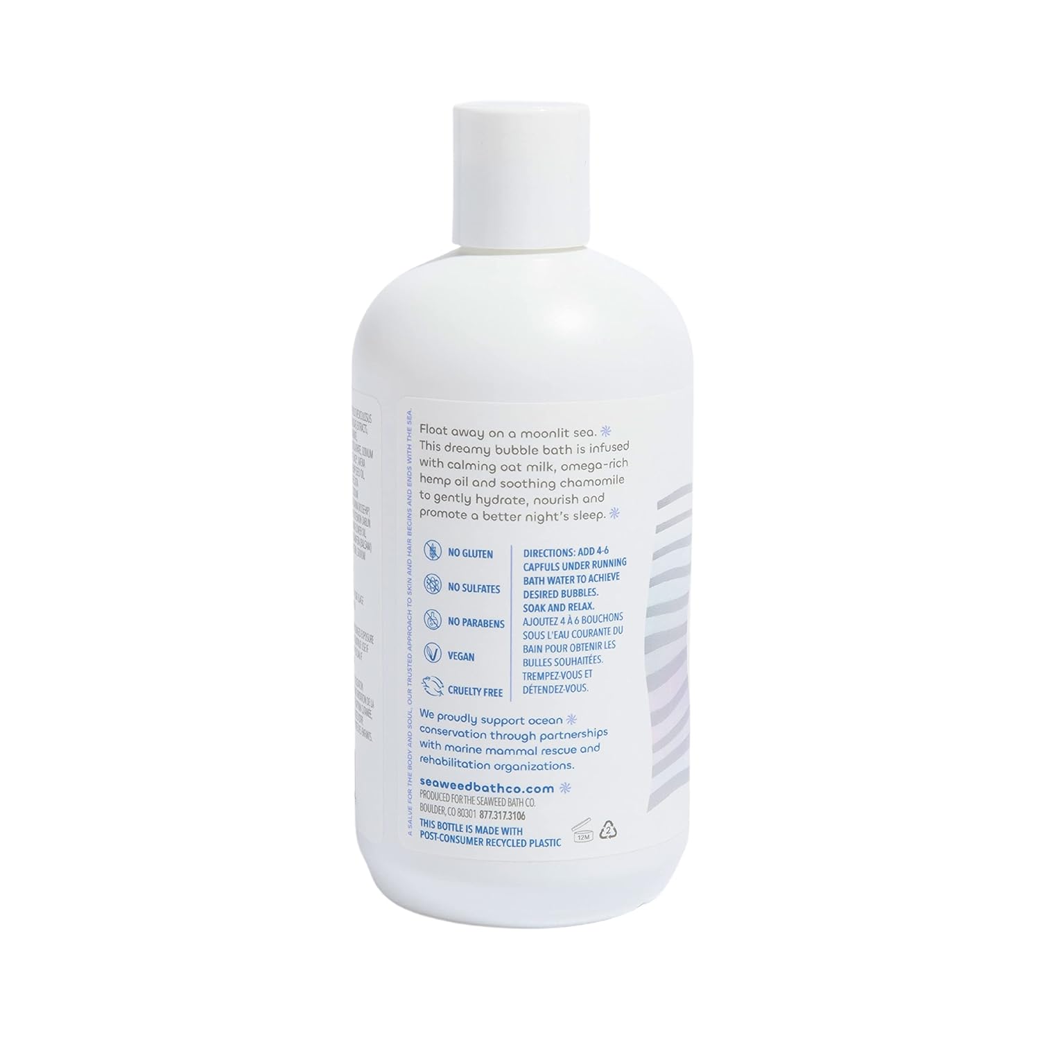 Unlock the magic of the sea with Seaweed Bath Co. Bubbling Dream Soak. Soak away the day with this relaxing bubble bath that calms the senses, made with sustainably harvested Atlantic seaweed, calming oat milk that gently hydrates and protects and omega-rich hemp oil that softens and smoothes skin. Inspired by the idea that nature already knows, we started with a centuries-old remedy – seaweed baths – while on a personal journey to find a better troubled skin solution. Since then, Seaweed Bath Co. has continued to use sustainable practices to unlock the nourishing and restorative gifts of the ocean, harnessing its benefits in every product we make. We proudly support ocean conservation through partnerships with marine mammal rescue and rehabilitation organizations.