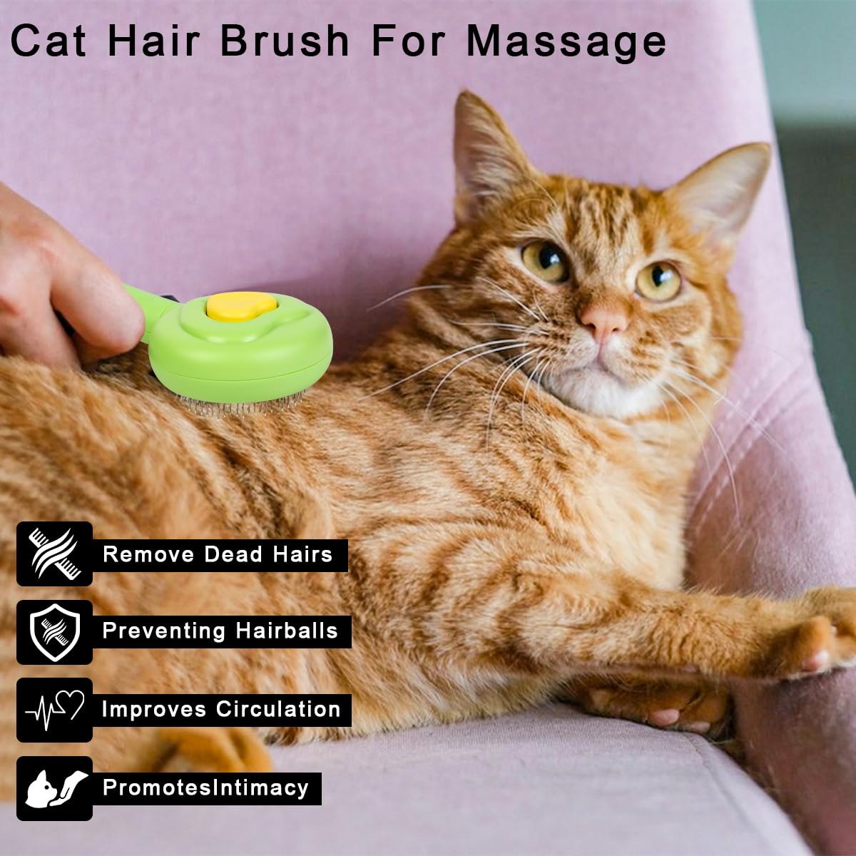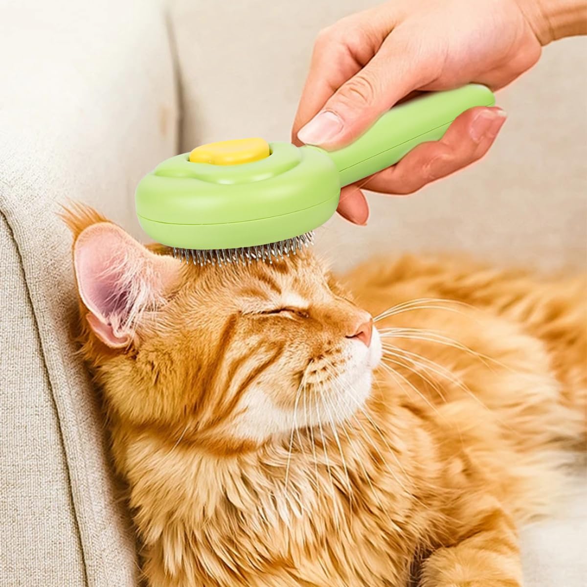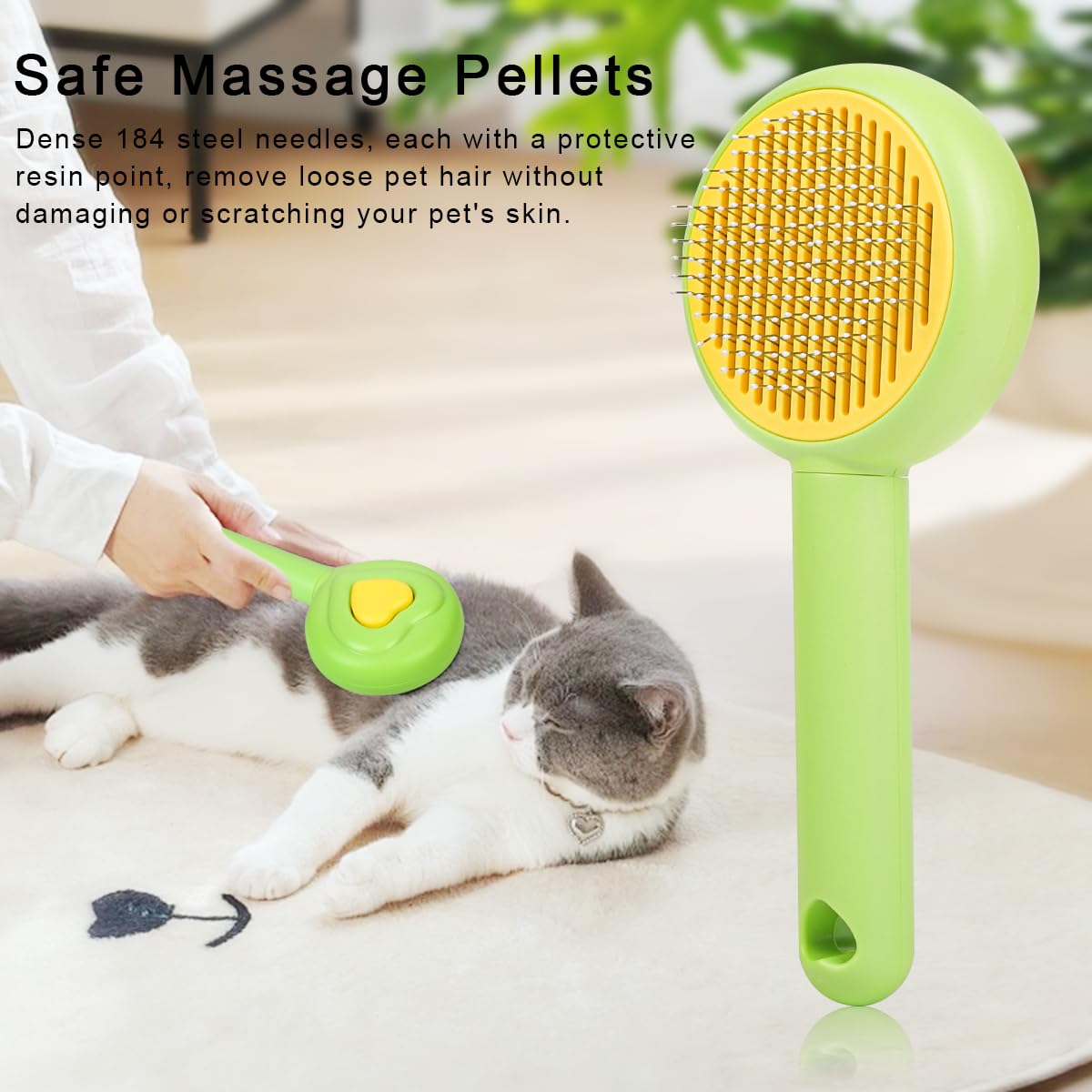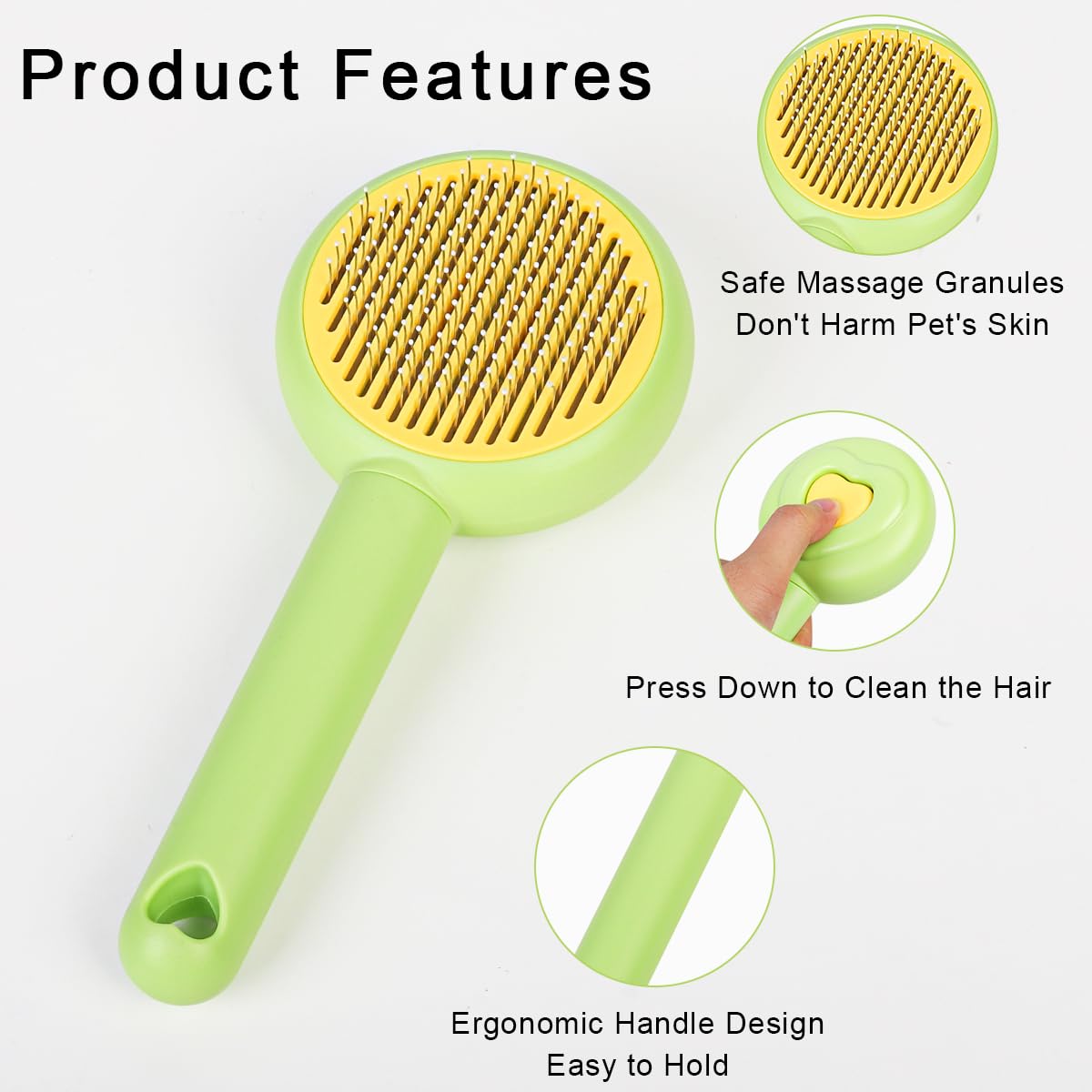 Self-Cleaning Pet Grooming Brush for Dogs & Cats, Effortlessly Removes Loose Hair, Tangles, and Mats – Ideal for Long & Short Hair Pets – Ergonomic, Skin-Friendly Design with Massage Particles Green
