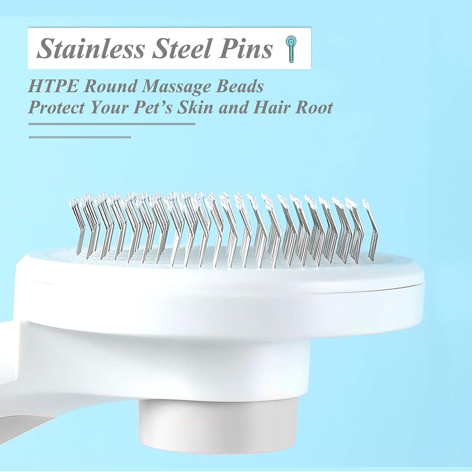 Self Cleaning Slicker Brush for Dogs and Cats, Pet Grooming Brush, Pet hair brush for Removes Undercoat Loose hair, Mats, Tangled and Dirt, Massages, for all hair types Dogs and Cats (Gray)