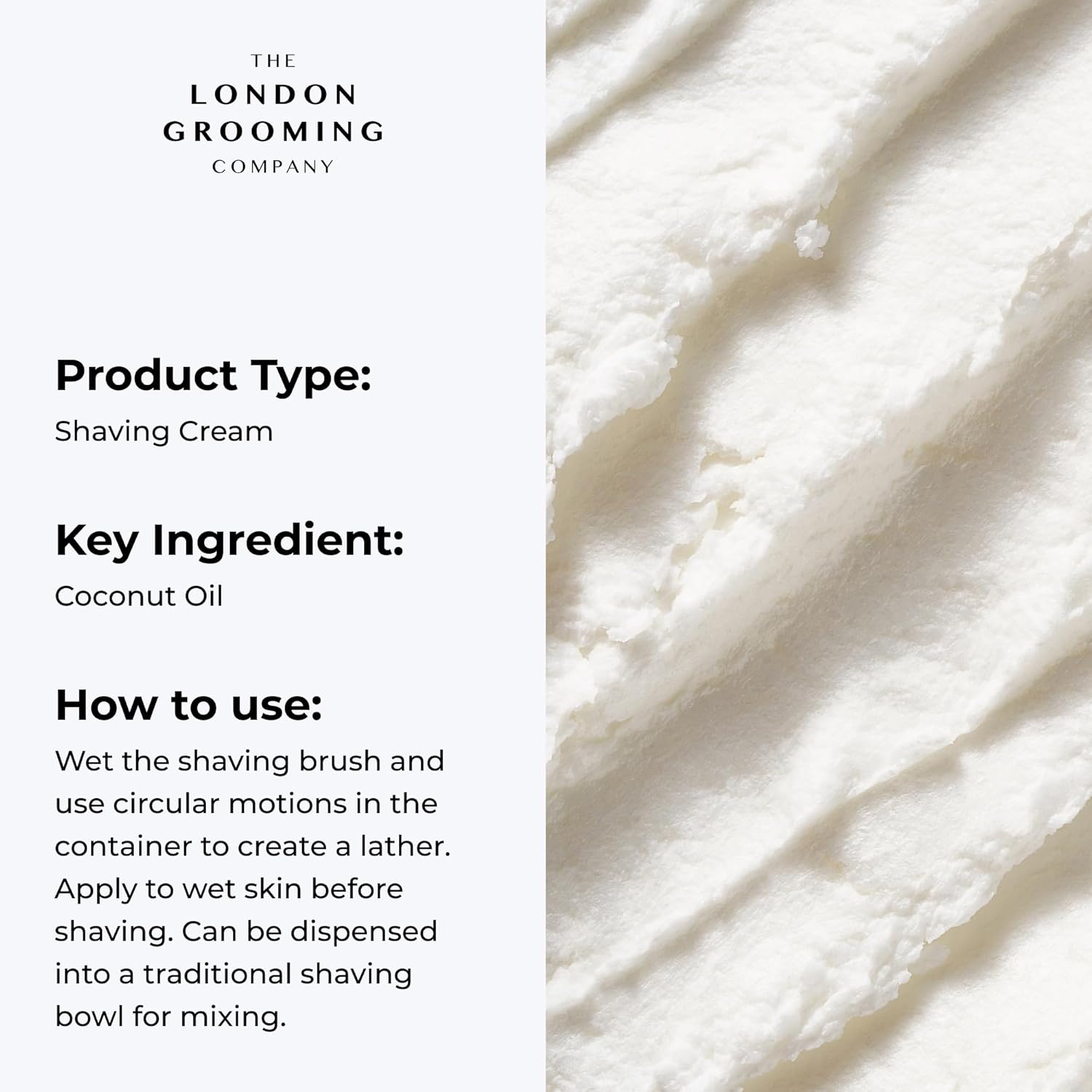 How to Use: Apply to cleansed, damp skin and work into a rich creamy lather before shaving.