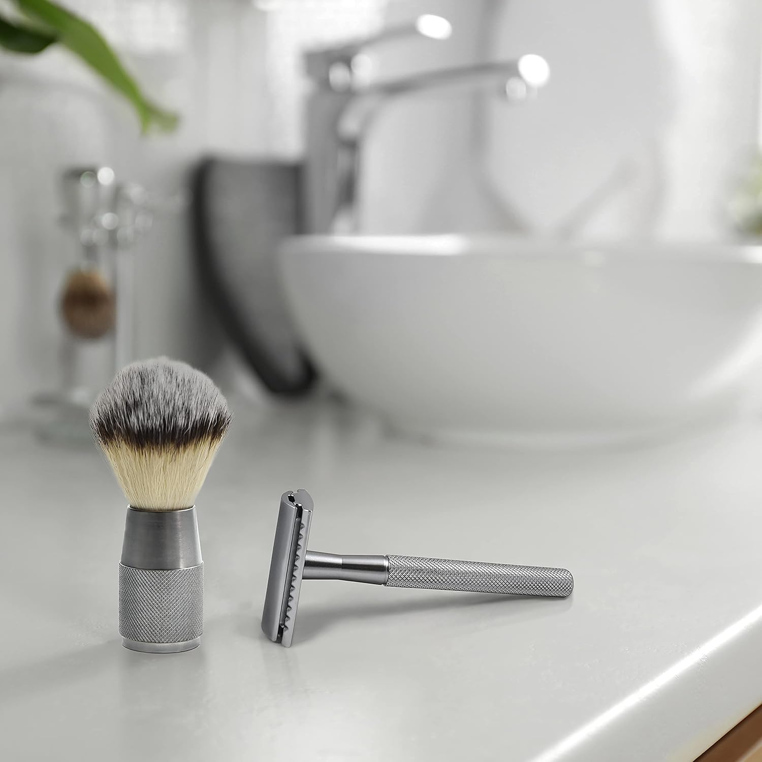 Shaving Brush Vegan | Silver | Ingrown Hair and Razor Bumps Treatment| Durable Shaving Brush Metal Handle| Shaving Brushes for Men and Women | Waste Free Synthetic Hair Brush| Bambaw
