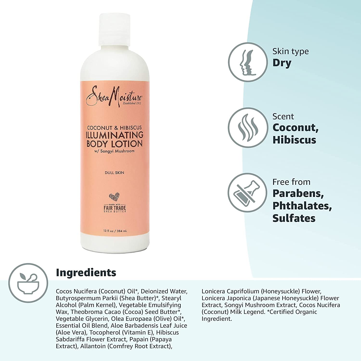 SheaMoisture Body Wash and Shea Moisture Lotion – Coconut & Hibiscus Body Wash & Coconut Lotion for Dry Skin with Songyi Mushroom, 13 Fl Oz Ea (2 Piece Set)