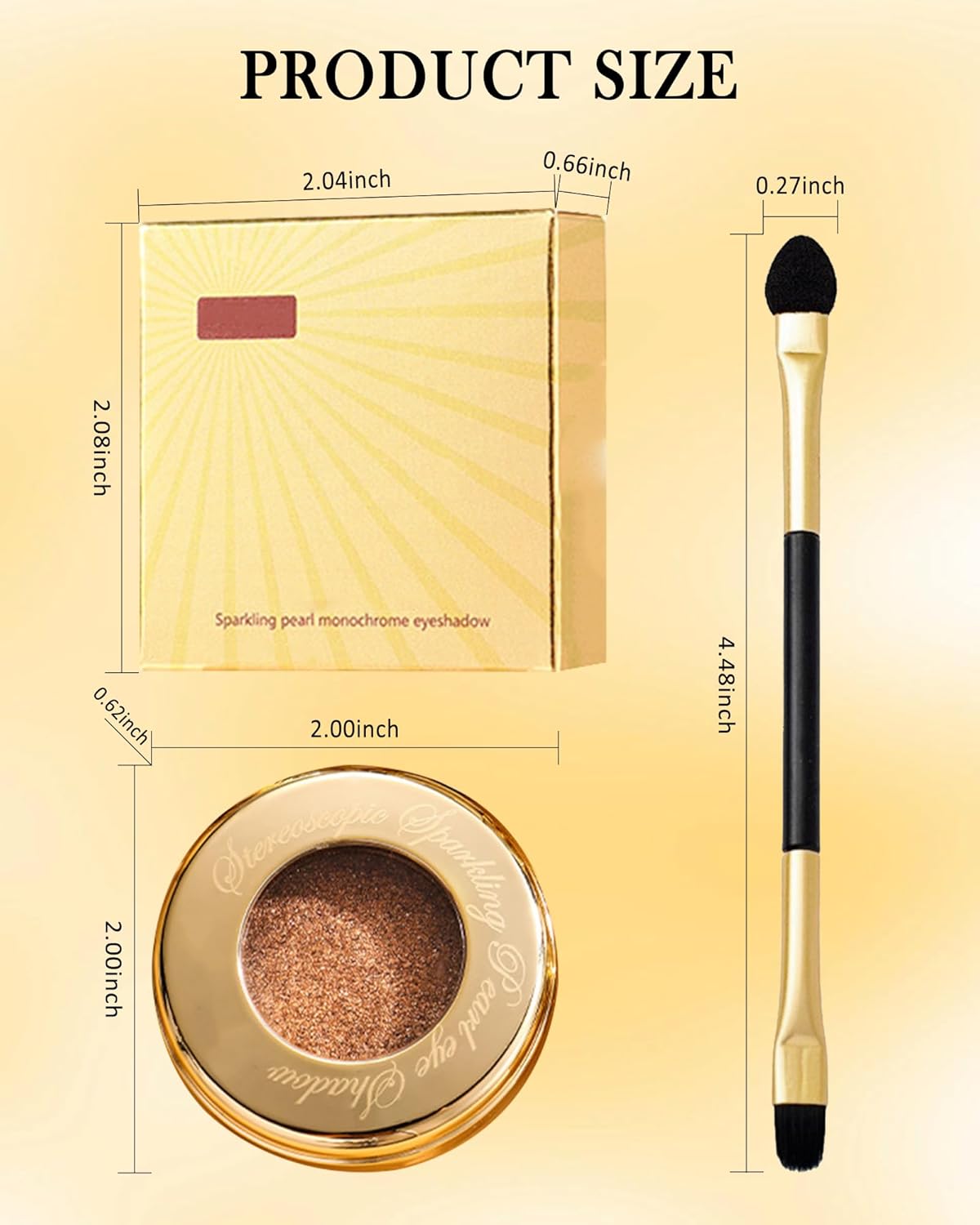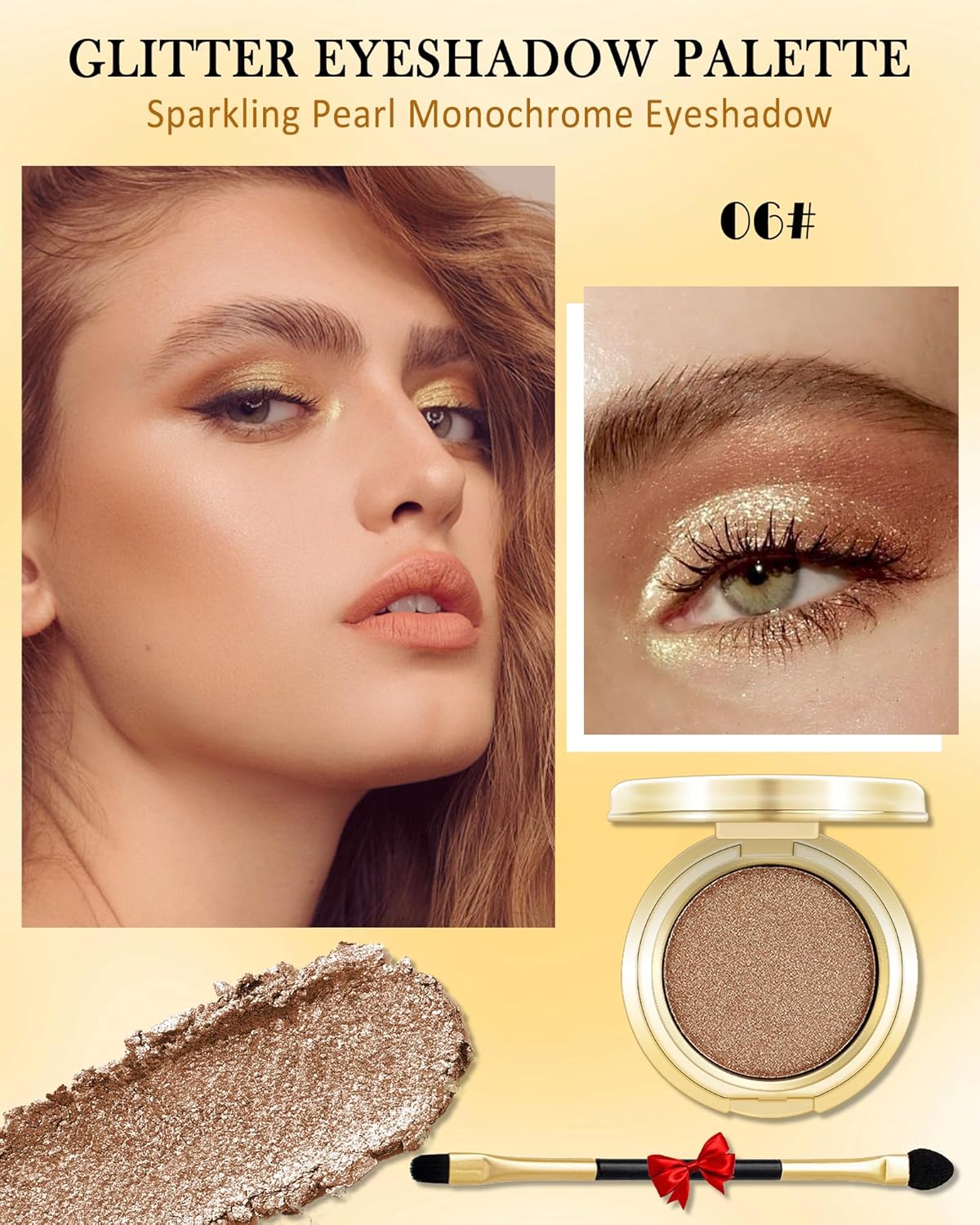 Single Gold Shimmer Eyeshadow,Pearl Glitter Eye Shadow Palette with Brush, Shimmery Illuminating Finish,Long Lasting Waterproof Cream Eyeshadow High Pigmented Ultra-Blendable Sparkly Eye Makeup-06