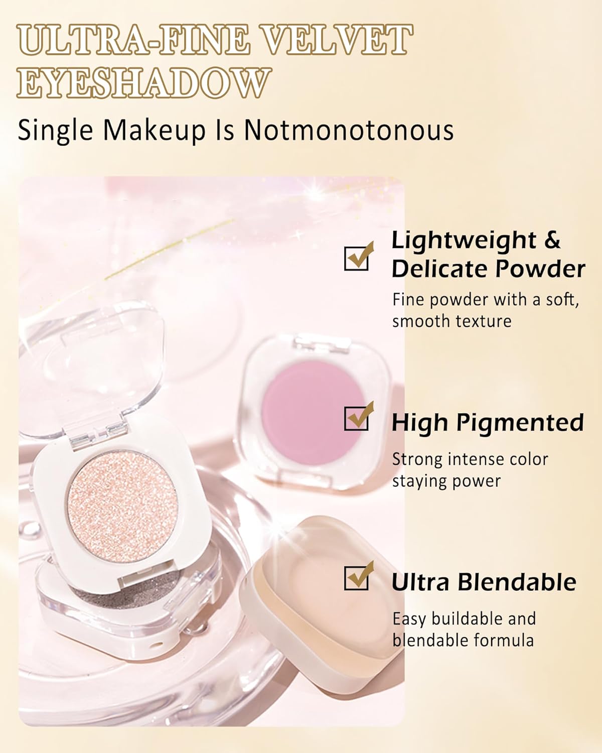 Single Matte Glitter Eyeshadow, Vanilla Off White Peach Pink Nude Beige Brown Cool Brown Champagne Bronzer Sliver Eye Shadow & Blush & Eyebrow Palette, Ultra-fine Velvet Eyeshadow Compact Powder, High Pigment, Long Lasting, Multiuse Blendable Korean Eye Makeup