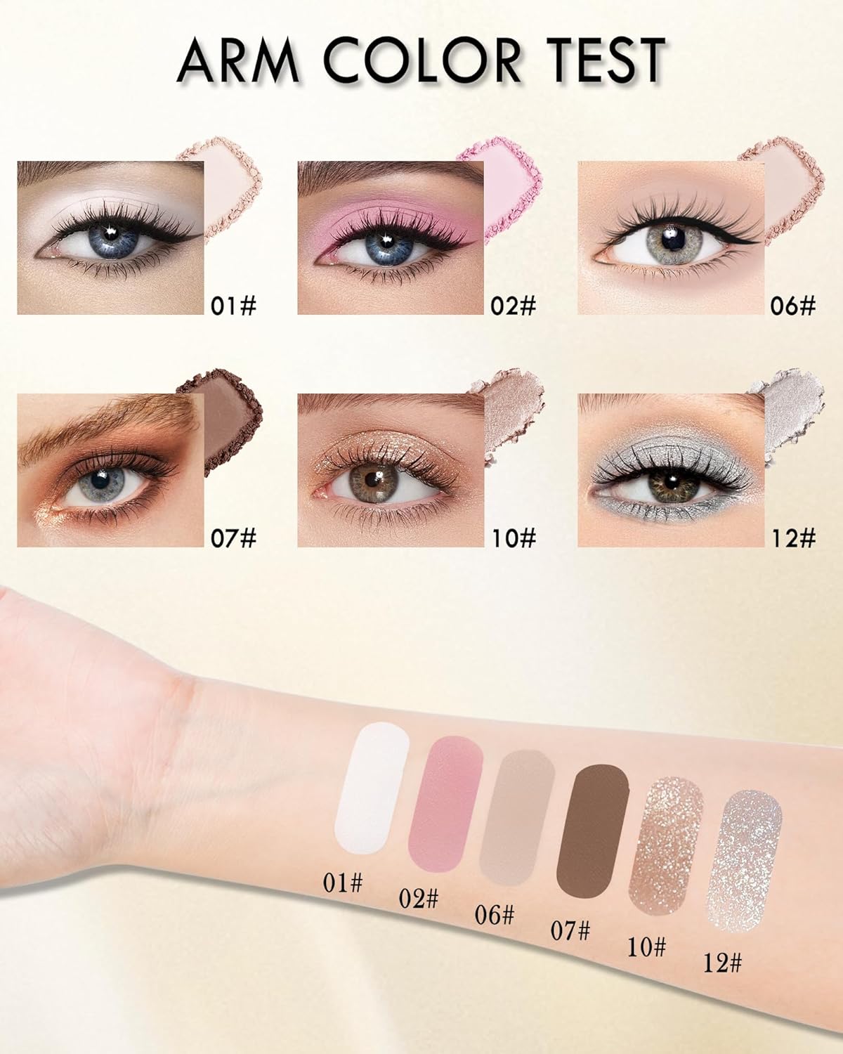 Multi-functional Use – These six different colors of monochromatic eyeshadows can be used not only as eyeshadow, but also for many other purposes! The vanilla off white is very flattering and can be used as an eye shadow base and eye highlight; Lavender pink eyeshadow, can also be used as blush, creating a gentle and clean makeup look; Natural coffee brown shade, apply color at the end of the eye, can be used as eyebrow powder, eyeliner.