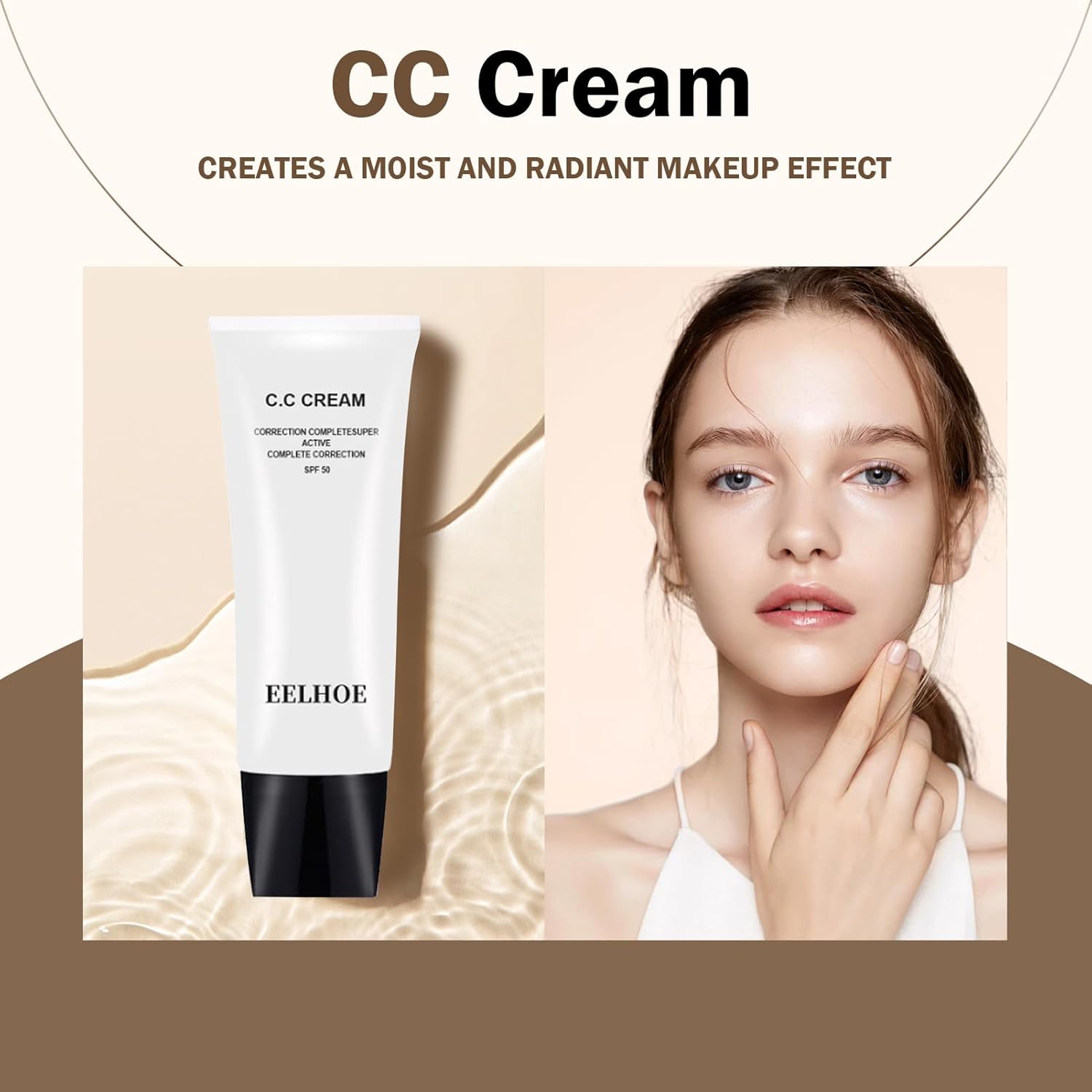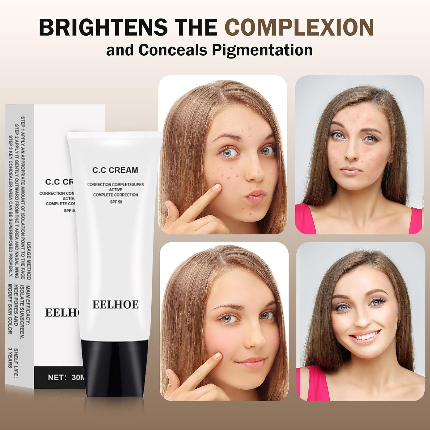 Skin Tone Adjusting CC Cream SPF 50 Foundation Mature Skin Makeup Primer Moisturizing Face Sunscreen Color Correcting Tinted Moisturizer for face Concealer Brightening Natural Color 1.05 oz (3pcs)