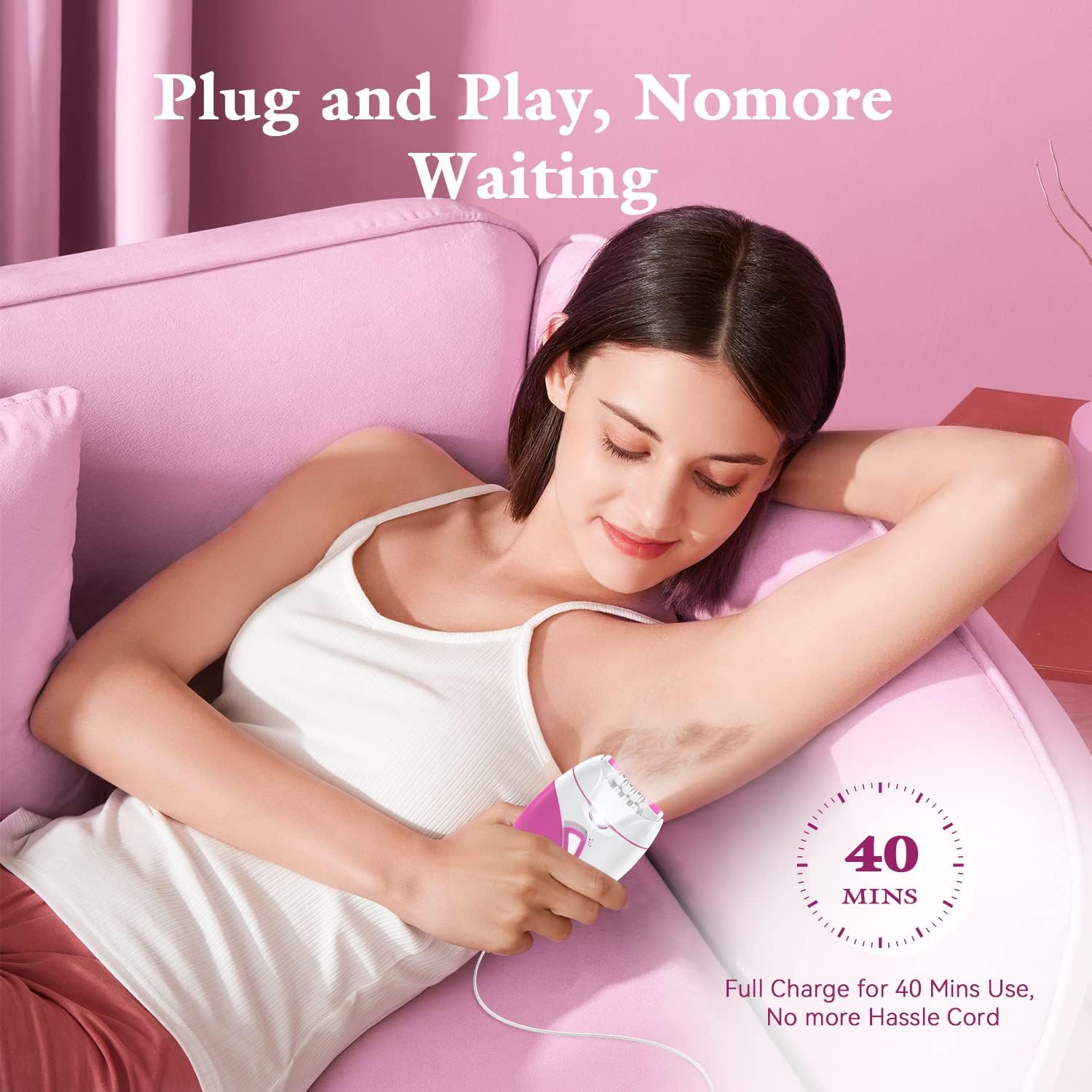 ❤Rechargeable or plug and use allows you Non-stop performance with corded use or to epilate with no charging breaks or