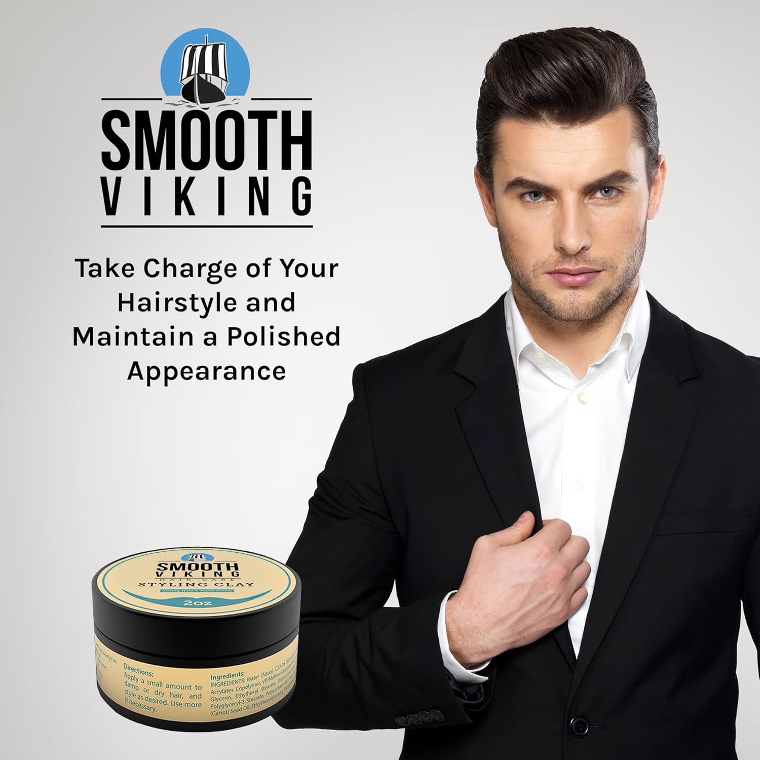 MATTE FINISH: Enjoy a shine-free, polished look with Smooth Viking’s matte clay hair product for men. Our styling clay provides a natural, non-glossy finish that’s ideal for any occasion. This mens hair pomade enhances your style with volume and texture, giving you a clean, sophisticated appearance that lasts all day.