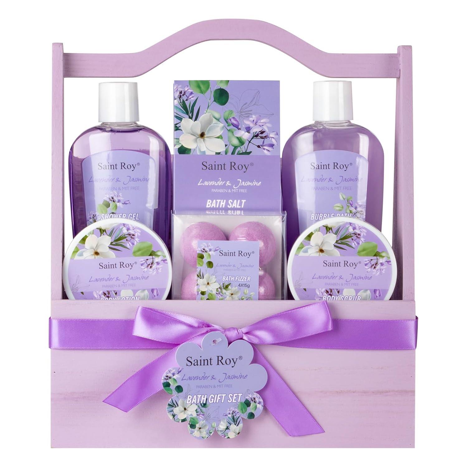 Spa Gift Baskets for Women – 13pcs Lavender Jasmine Luxury Experience in Elegant Luxury Box, Spa Gift Set with Nourishing Shower Gel, Bubble Bath, Lotion. Perfect Birthday Gifts for Her, Anniversary