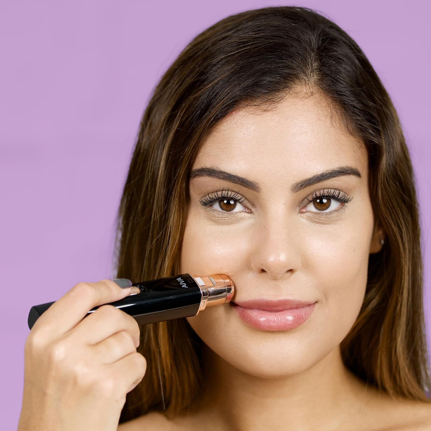 DUAL-FUNCTION: The AIVA is precisely engineered at one end with a facial hair removal head comprised of 9 sharp micro blades, and an eyebrow trimming head at the other, allowing for efficient and painless hair removal