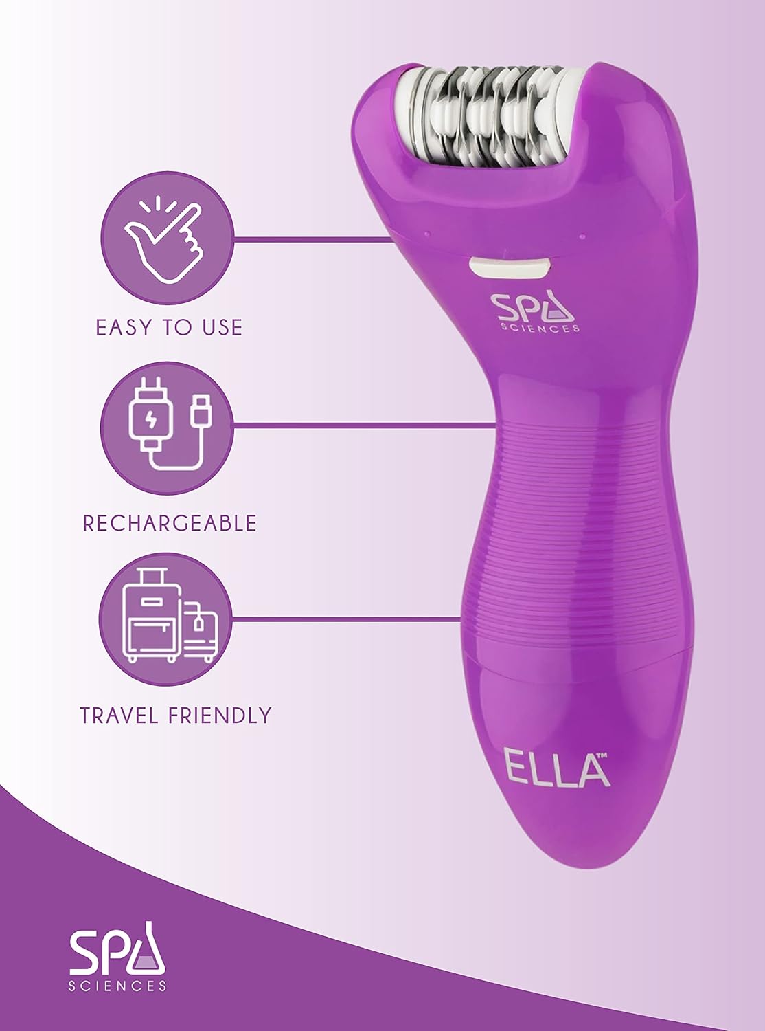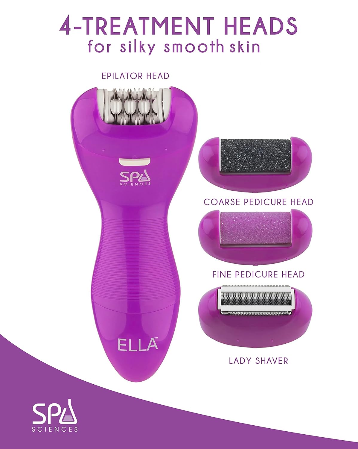 Spa Sciences Ella – 3-in-1 Advanced Smoothing Treatment – Wet/Dry Epilator, Lady Shaver, and Pedicure System – for Softer, Smoother, Brighter Skin – All Skin Types – USB Rechargeable