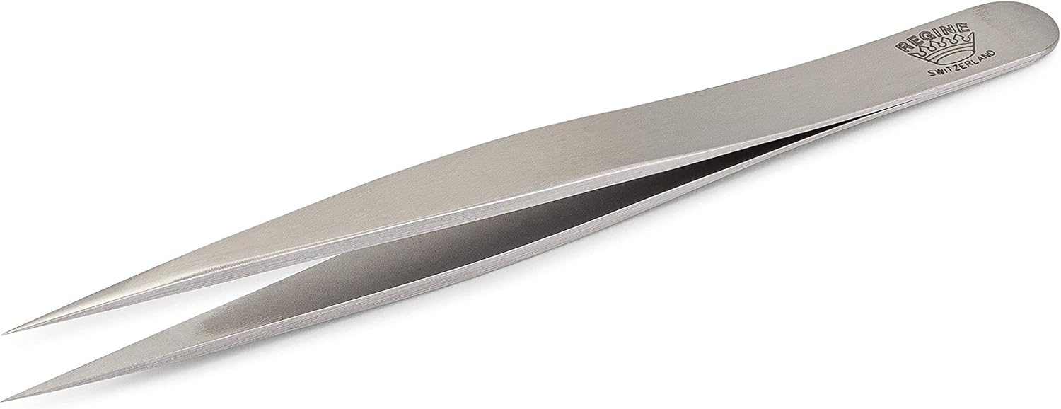The pointed tips make removal as easy and pain-free as possible. Made with hardened, rust-proof stainless steel. Regine Tweezers are 100% handmade in Switzerland and backed by over a century of tradition. Regine Tweezers go through a 40-step finishing process and final test under a microscope to ensure tweezer tips are in perfect alignment. Regine Tweezers are the go-to tweezers by beauty professionals for their superior quality.