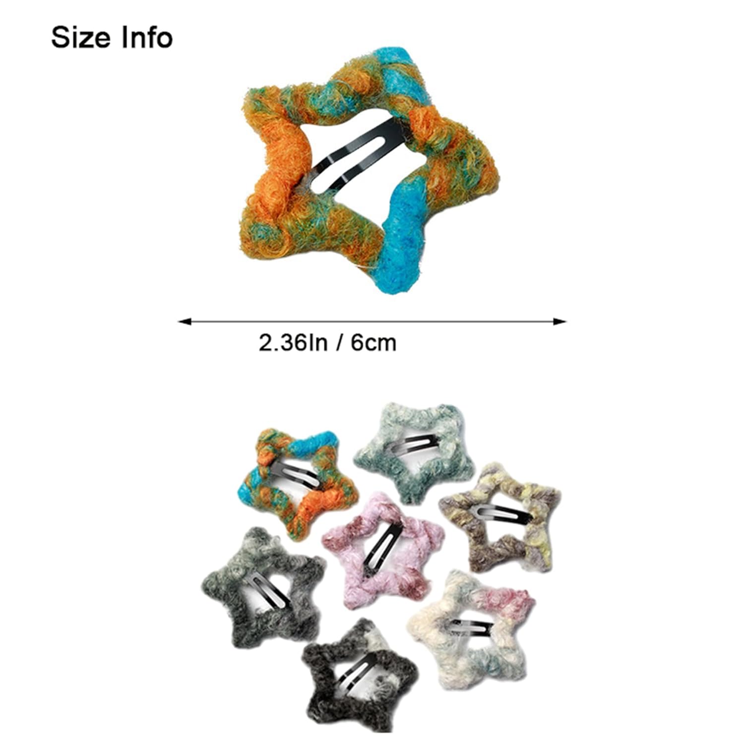 Star Hair Clips, 7 Pcs Color Hair Accessories Metal Plush Hair Snap Clips Barrettes for Kids Girls Women