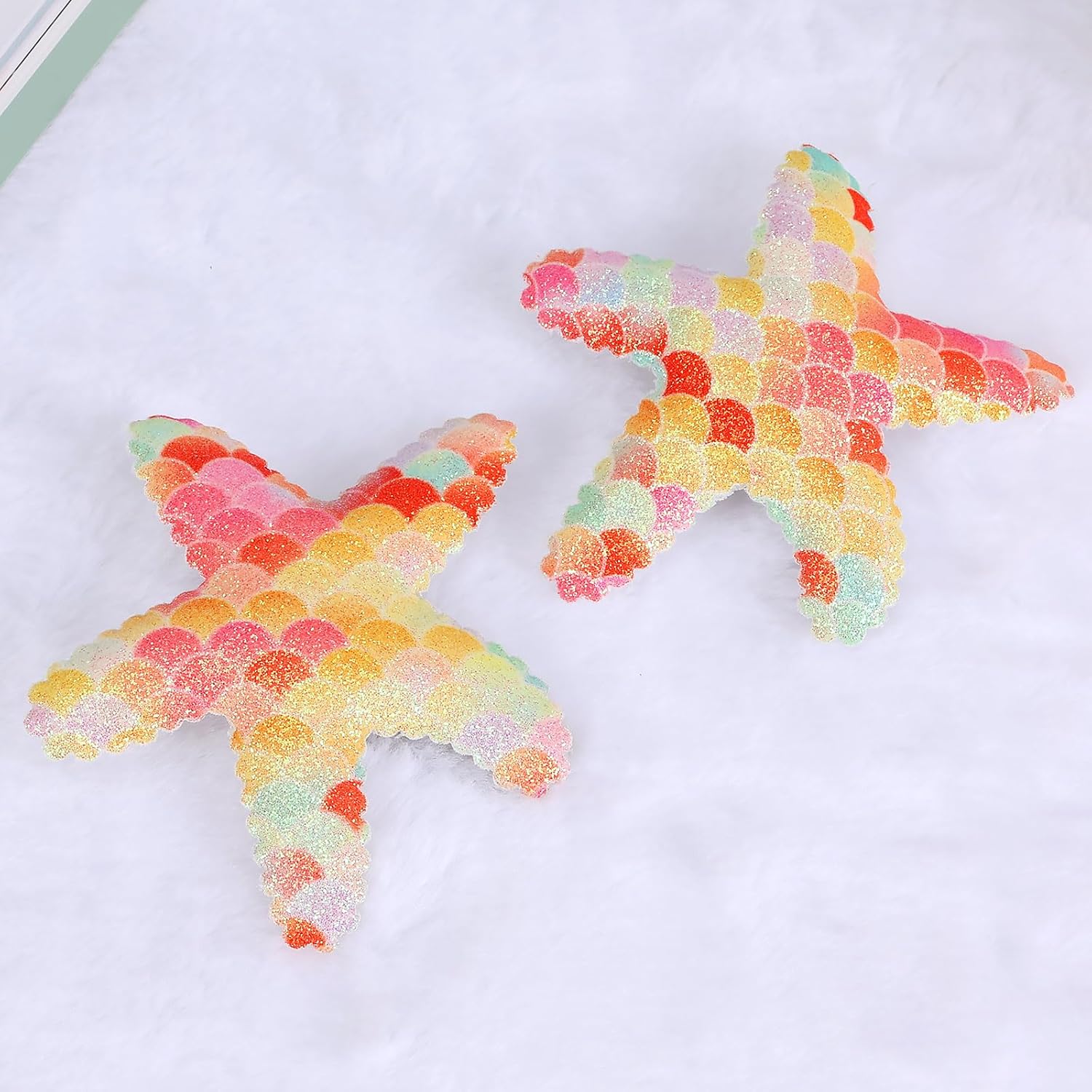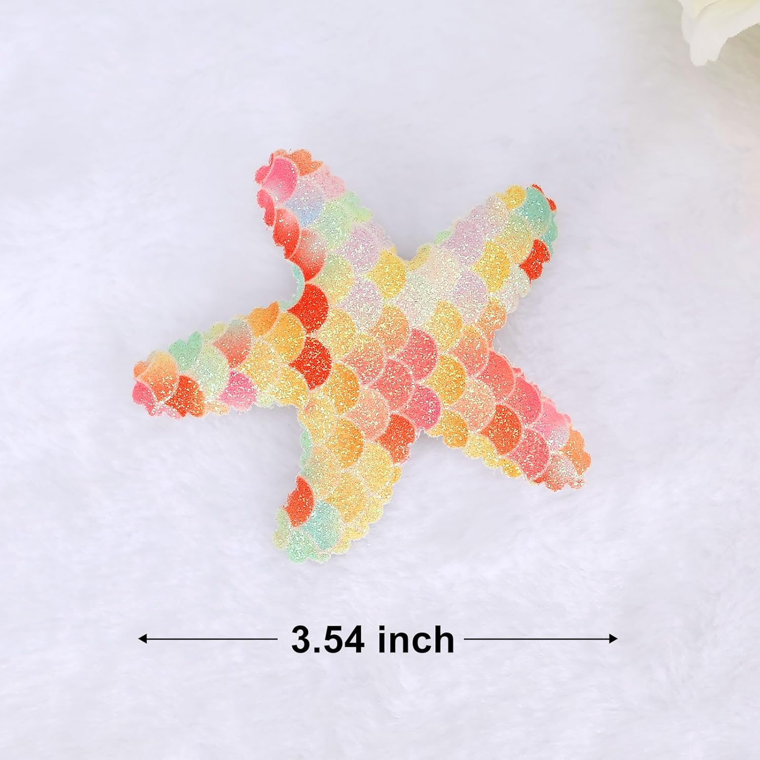 Starfish Hair Clips Mermaid Glitter Hair Clip, Laser Glitter Sea Star Hair Barrettes Hair Alligator Clips for Women Girls Kids Vacation Cosplay Birthday Costume Accessories Gift (Orange)