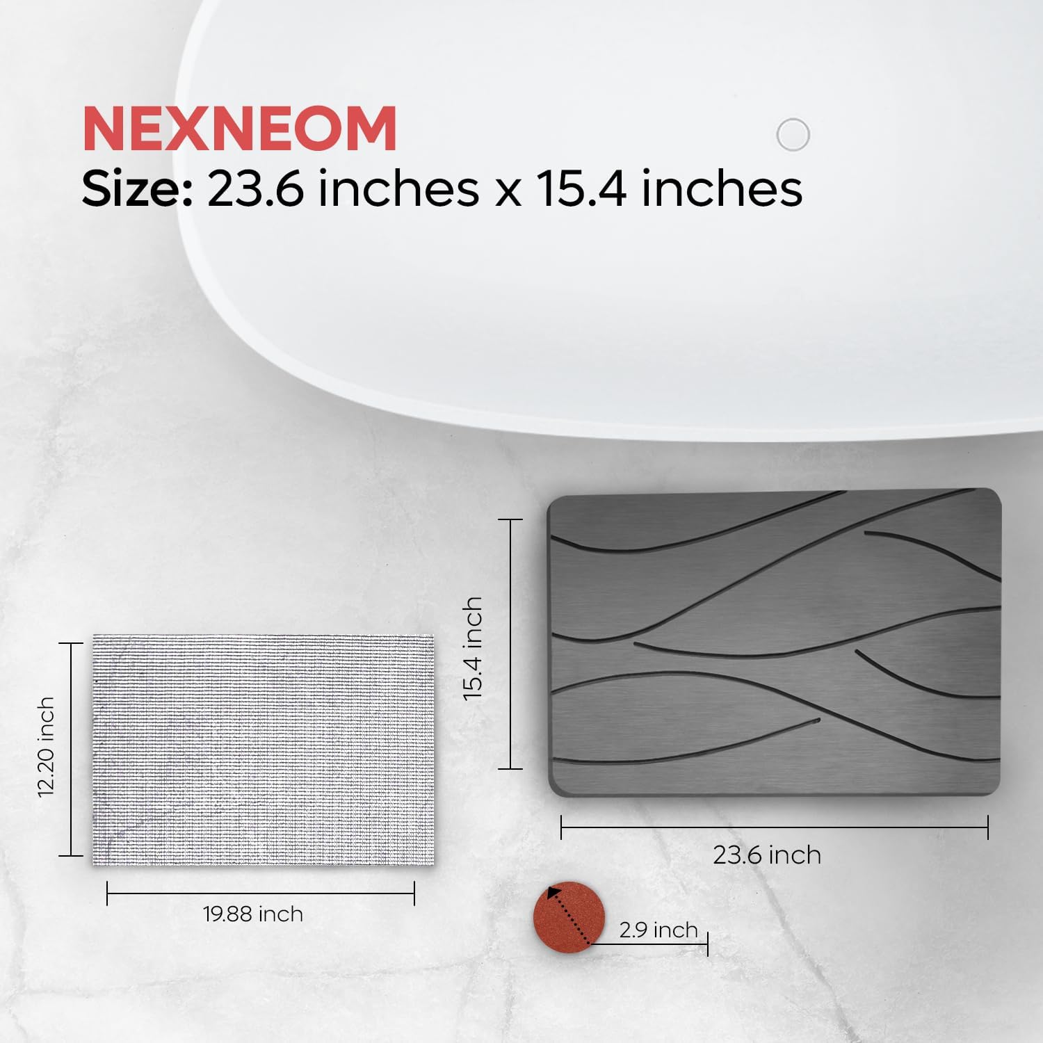 Stone Bath Mat -Luxurious Natural Diatomaceous Earth Bath Mat Super Absorbing -Easy to Clean Our Shower Mat -Non-Slip Wavy Bath Stone Mat no Bad Odor -on Kitchen Counter -Grey (23.6×15.4×0.4)