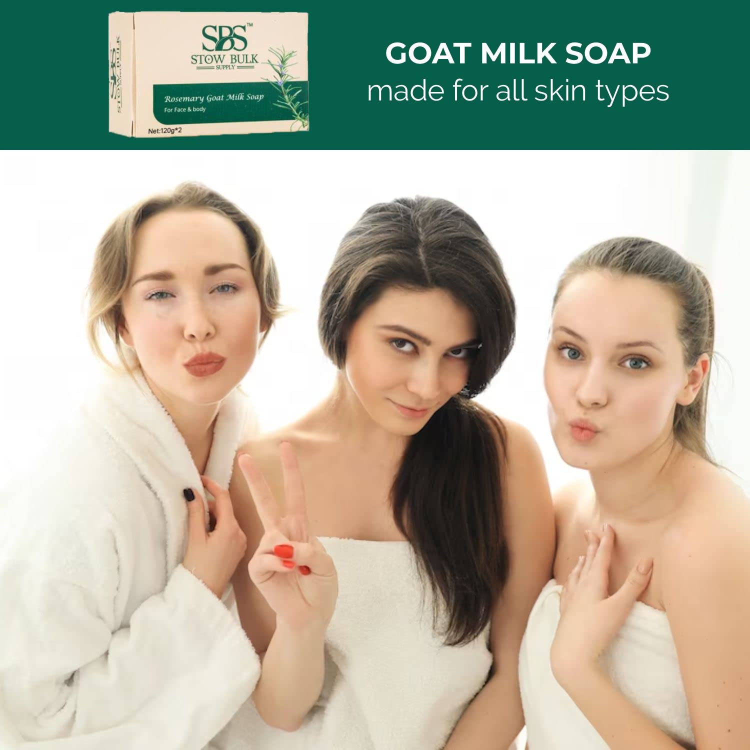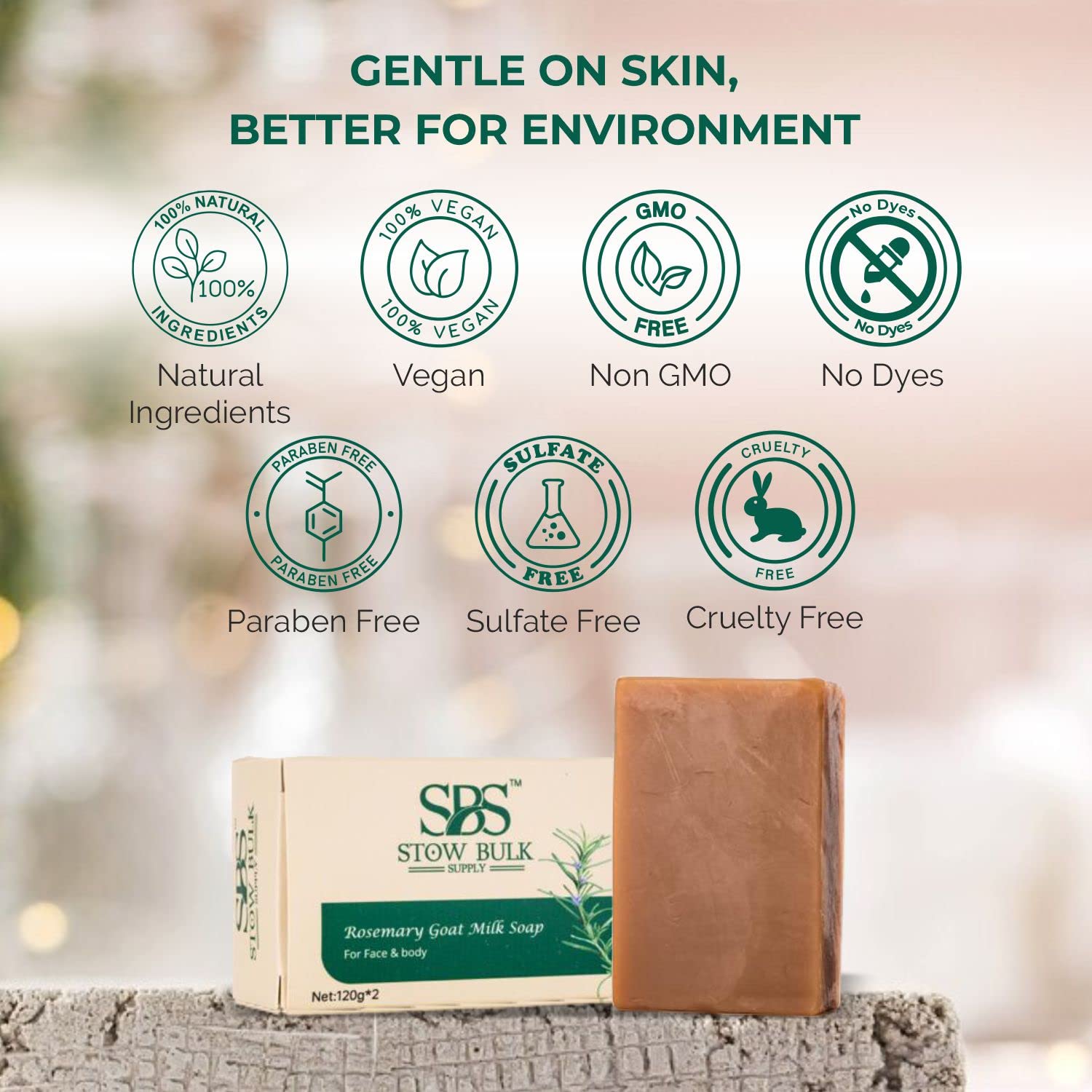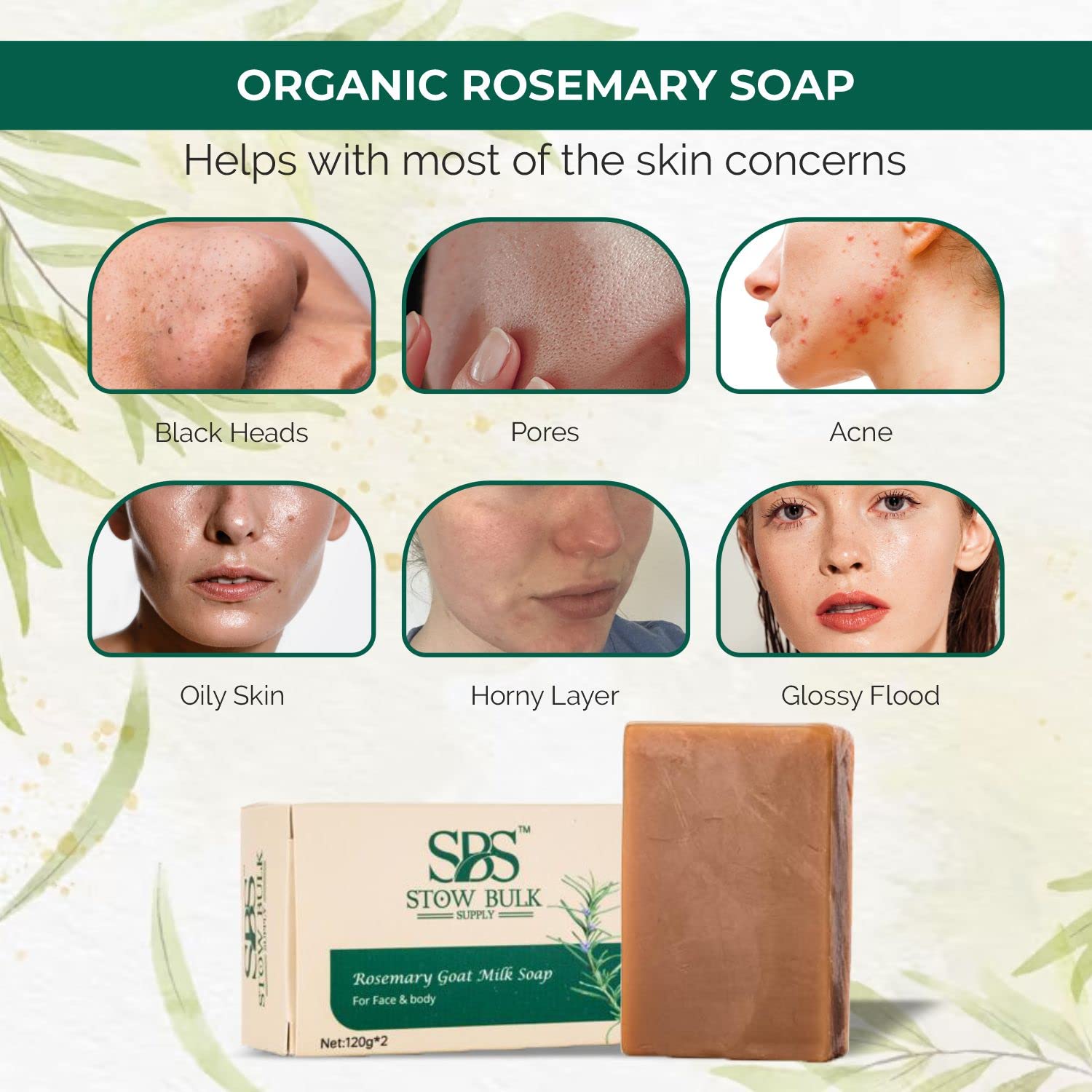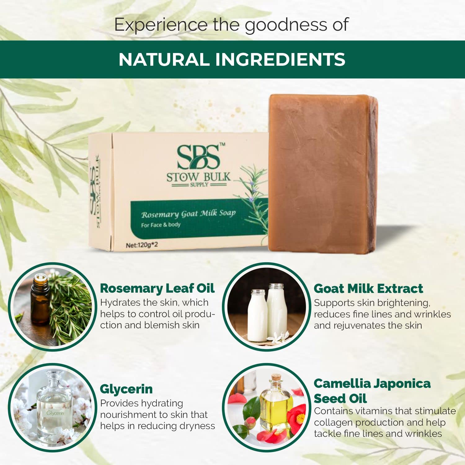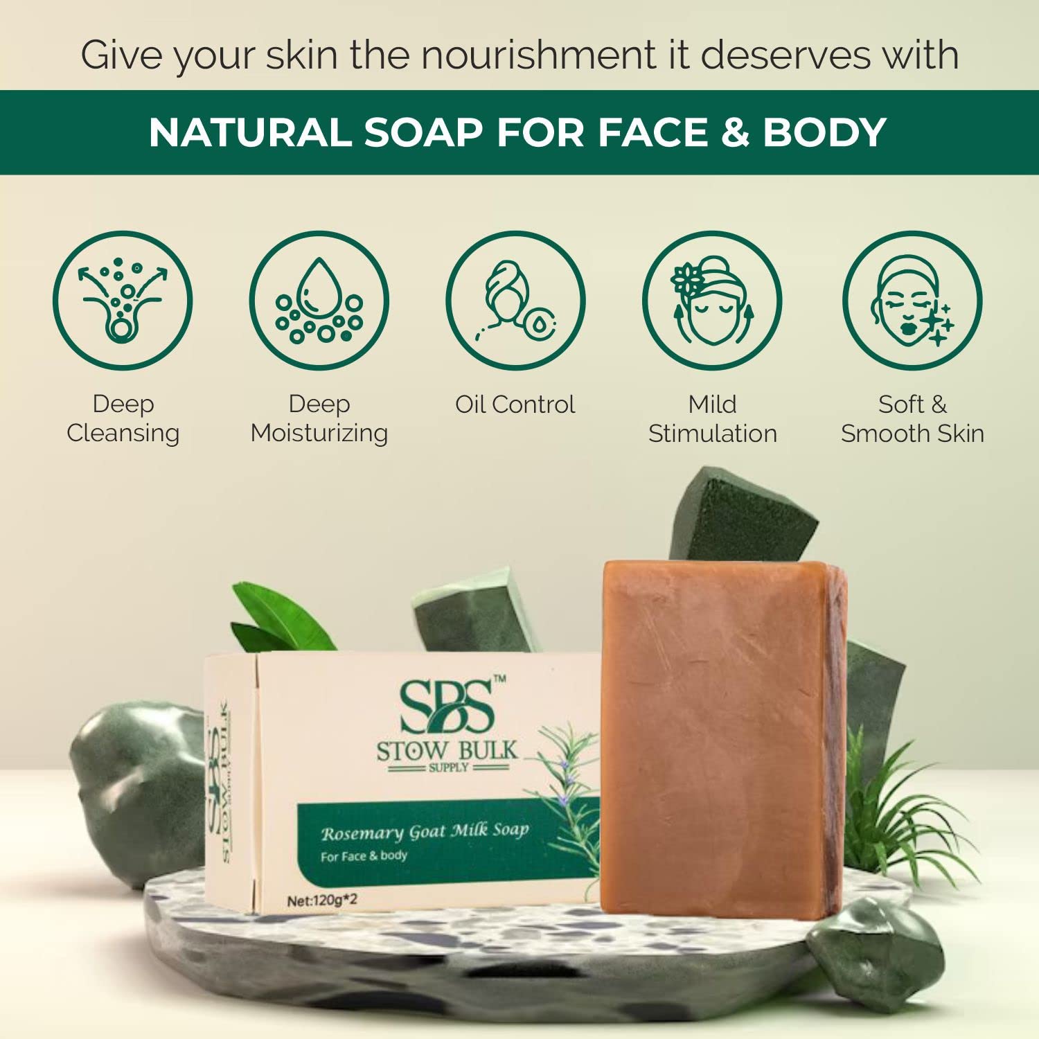 STOW BULK 2 Pieces Rosemary Mint Goat Milk Soap, 100% Natural & Organic Glycerin Moisturizing Bars for Dry Sensitive Skin, Gently Cleans Hand, Face & Body, Soap Bar for Men & Women – 4.2oz