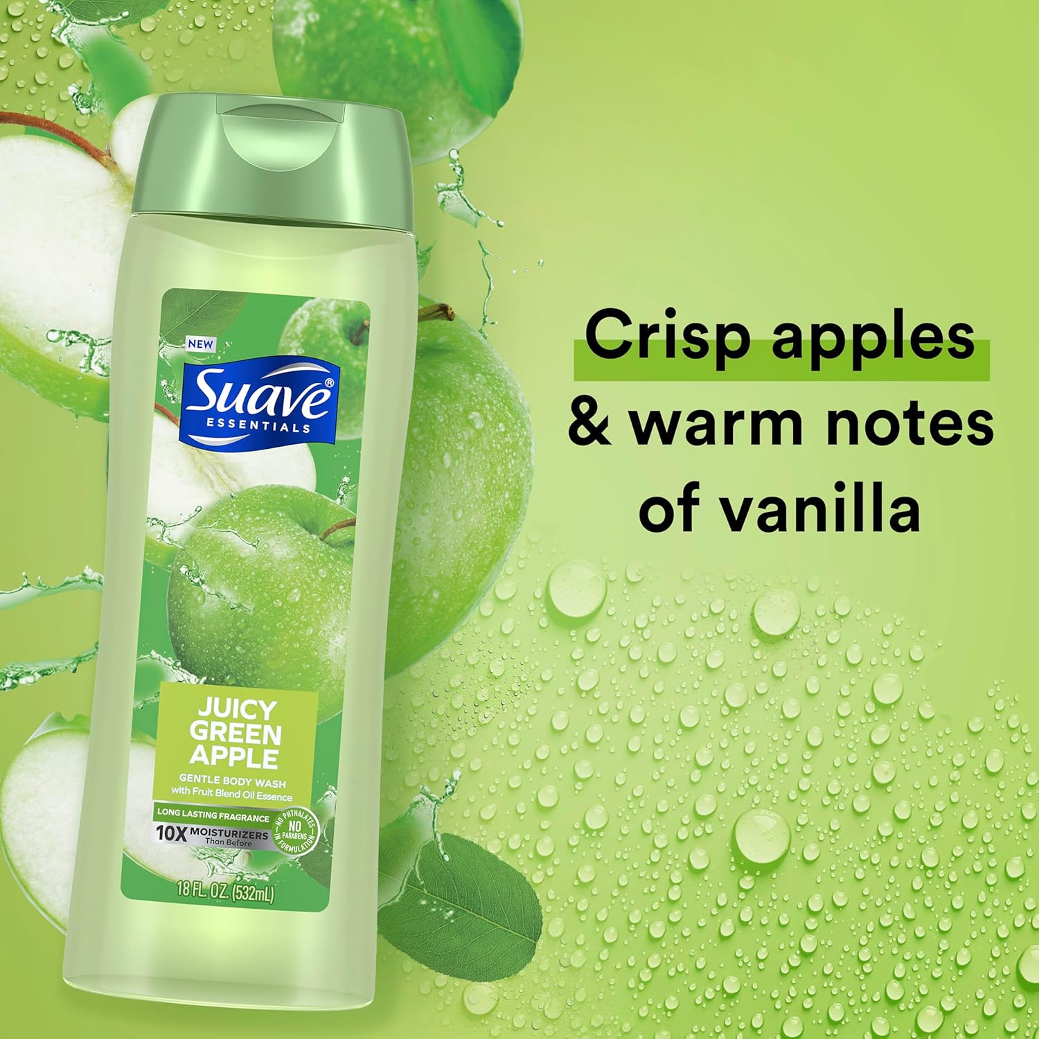 Suave Moisturizing Body Wash, with Juicy Apple and Vitamin E Extract, No Parabens, No Phtahaltes, 18 Oz Pack of 6