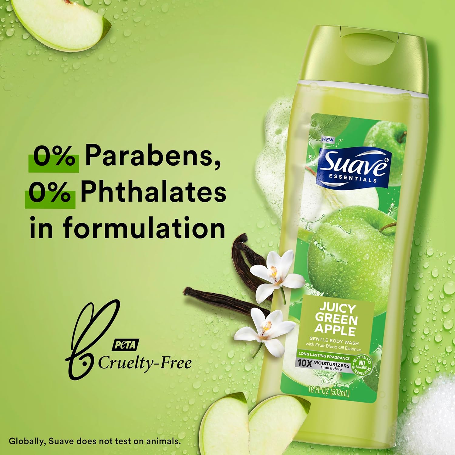 All Suave Essentials Body washes are formulated without parabens or phthalates. Suave is certified Cruelty Free by PETA. Globally, Suave does not test on animals.