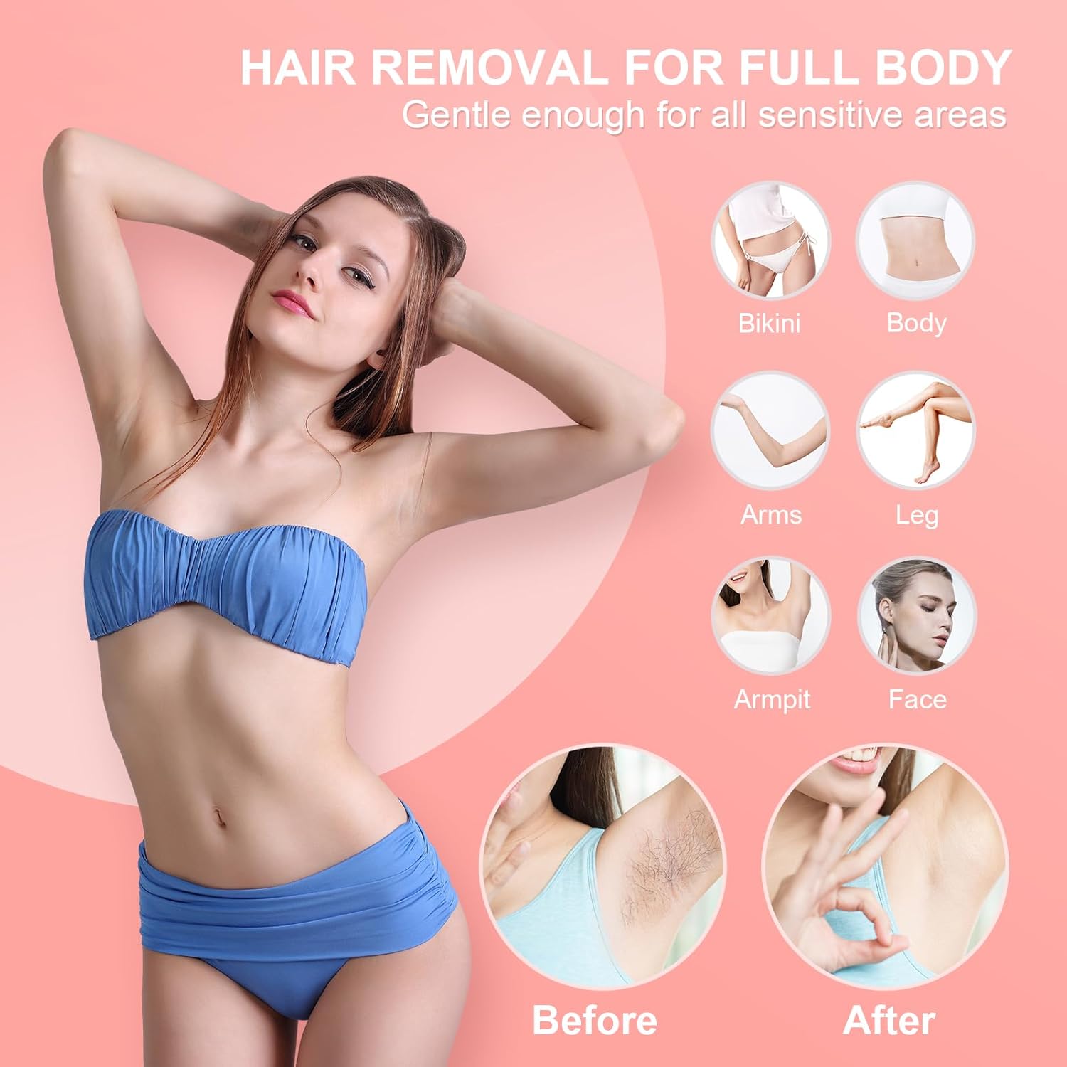 【REDUCED PAIN】The use of which causes minimal pain, providing a more comfortable and safe hair removal experience.Using unique waxing technology, this body hair removal kit efficiently removes hair from all parts of the body, leaving the skin feeling fresh and new.