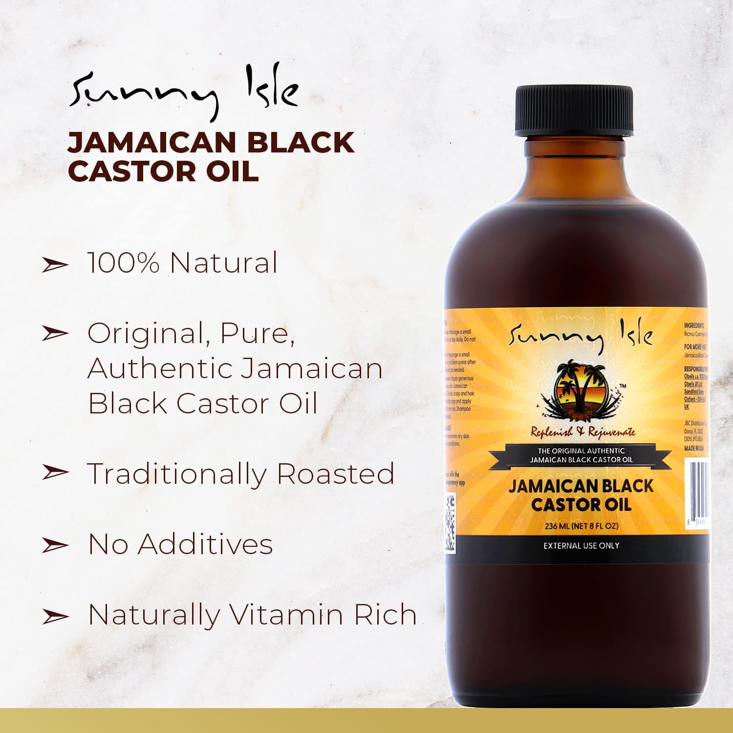 Sunny Isle Jamaican Black Castor Oil 8oz | 100% Natural Treatment for Hair, Scalp and Skin