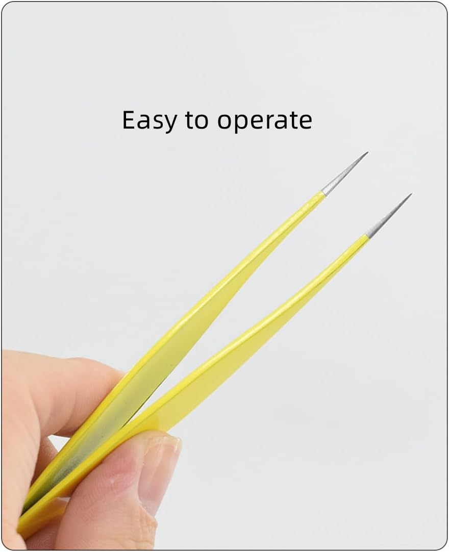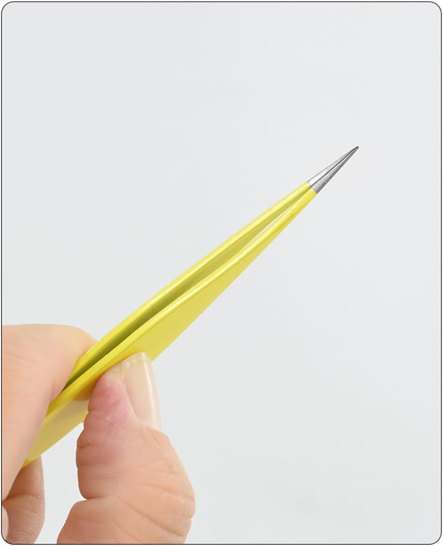 These fine tweezers are supplied with protective caps. Long Pointed tip tweezers best are small use for picking smaller craft stickers objects can be widely handled and are ideal for tiny areas. Fine tip tweezers for splinters are ideal for picking up little pieces of paper, sharp brow little hairs or tiny items when crafting, as well as mini beads. These yellow tweezers & black will last you a long time and will effectively pick out even splinter & the tiniest of smooth facial hairs.