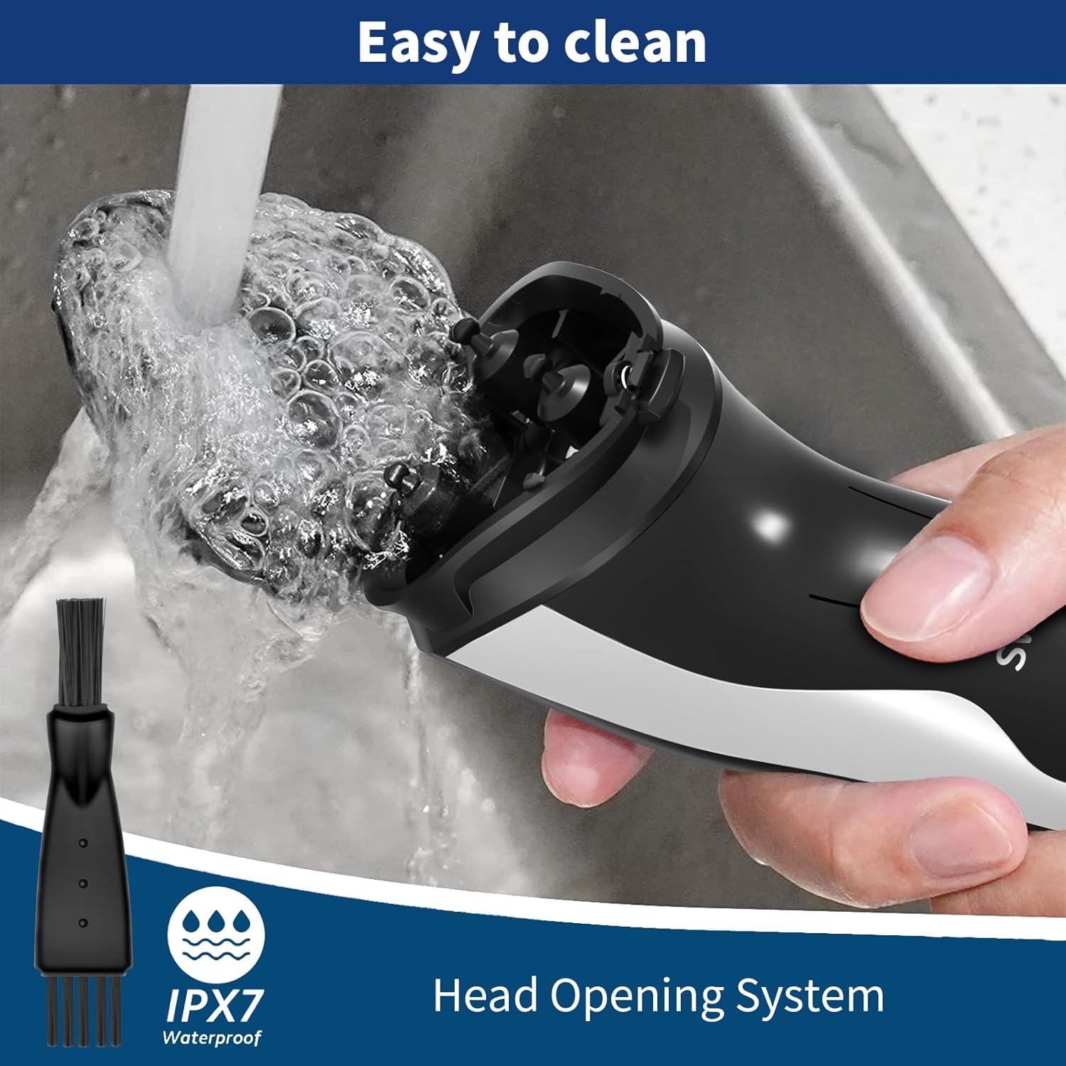 SweetLF Dry and Wet Electric Shaver (with 3 Blades) Rechargeble Electric Razor for Men Cordless Razor IPX7 Waterproof /4D Rotary Head/Pop-Up Trimmer Series SWS7105 [Upgrade]
