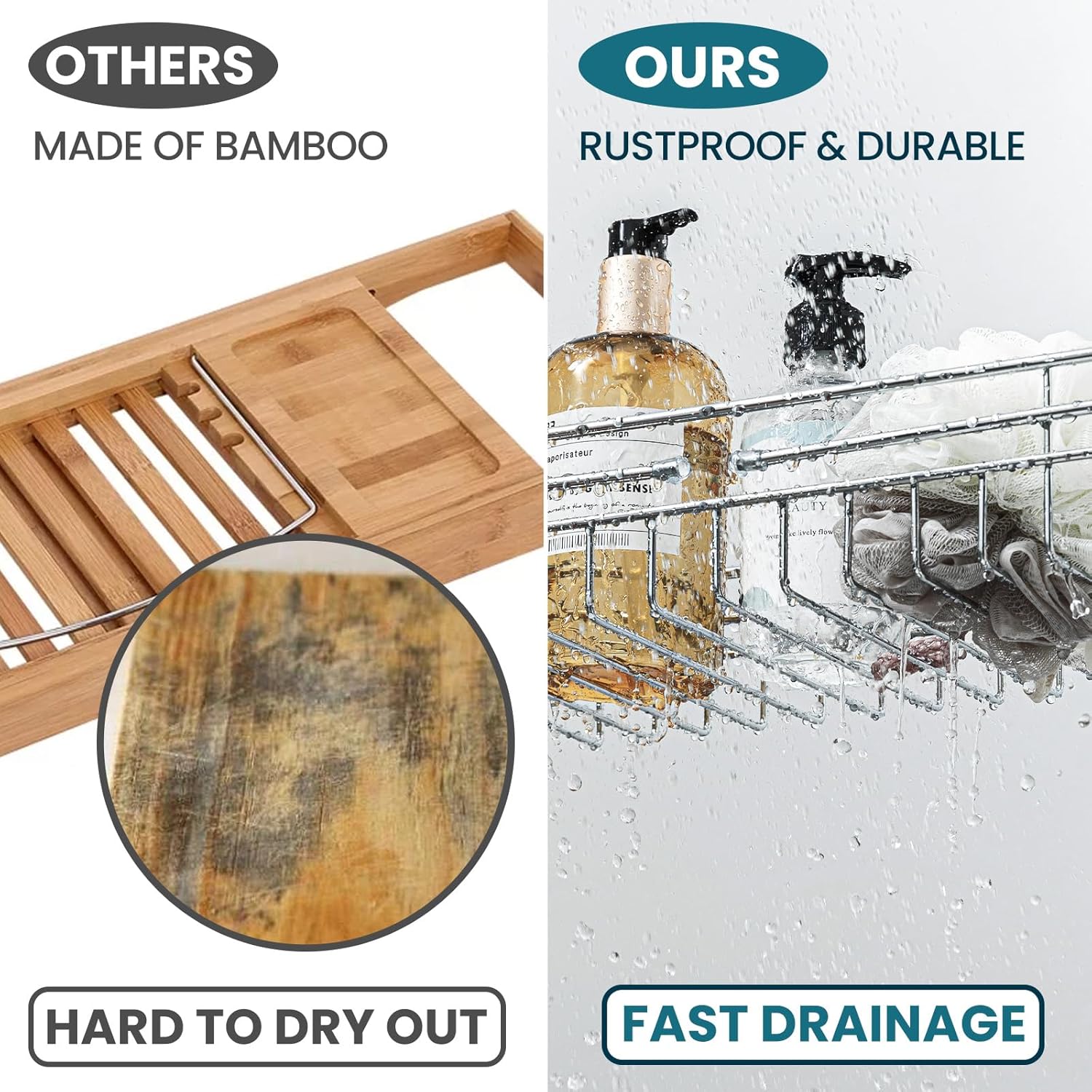 【Rustproof & Easy to Clean】Made of durable 304 stainless steel, the metal wire tub caddy for bathtub will not retain or absorb water, making it easy to clean and maintain a good condition every time you take a bath.