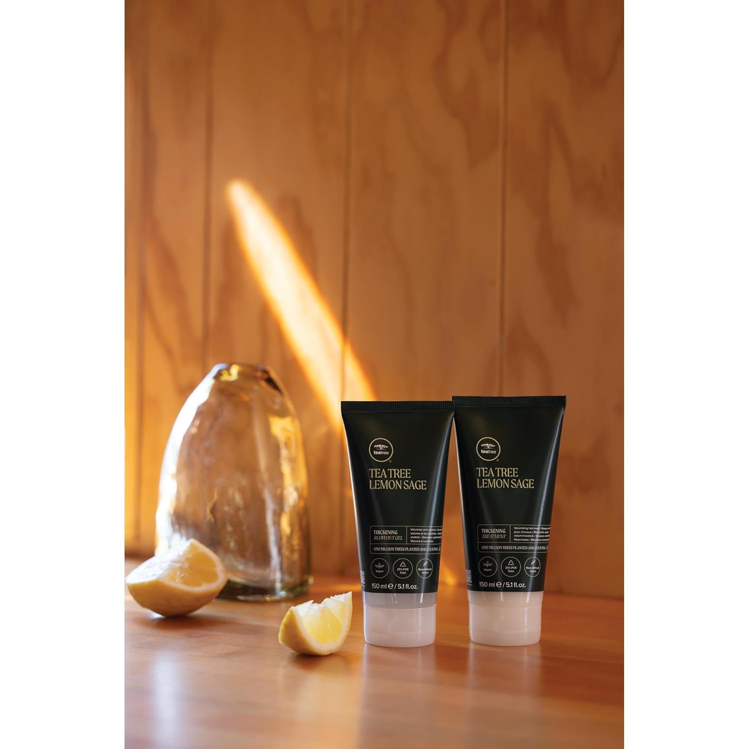Thickening shampoo with uplifting lemon, sage and tea tree plumps up fine strands so hair looks and feels clean, full and healthy.