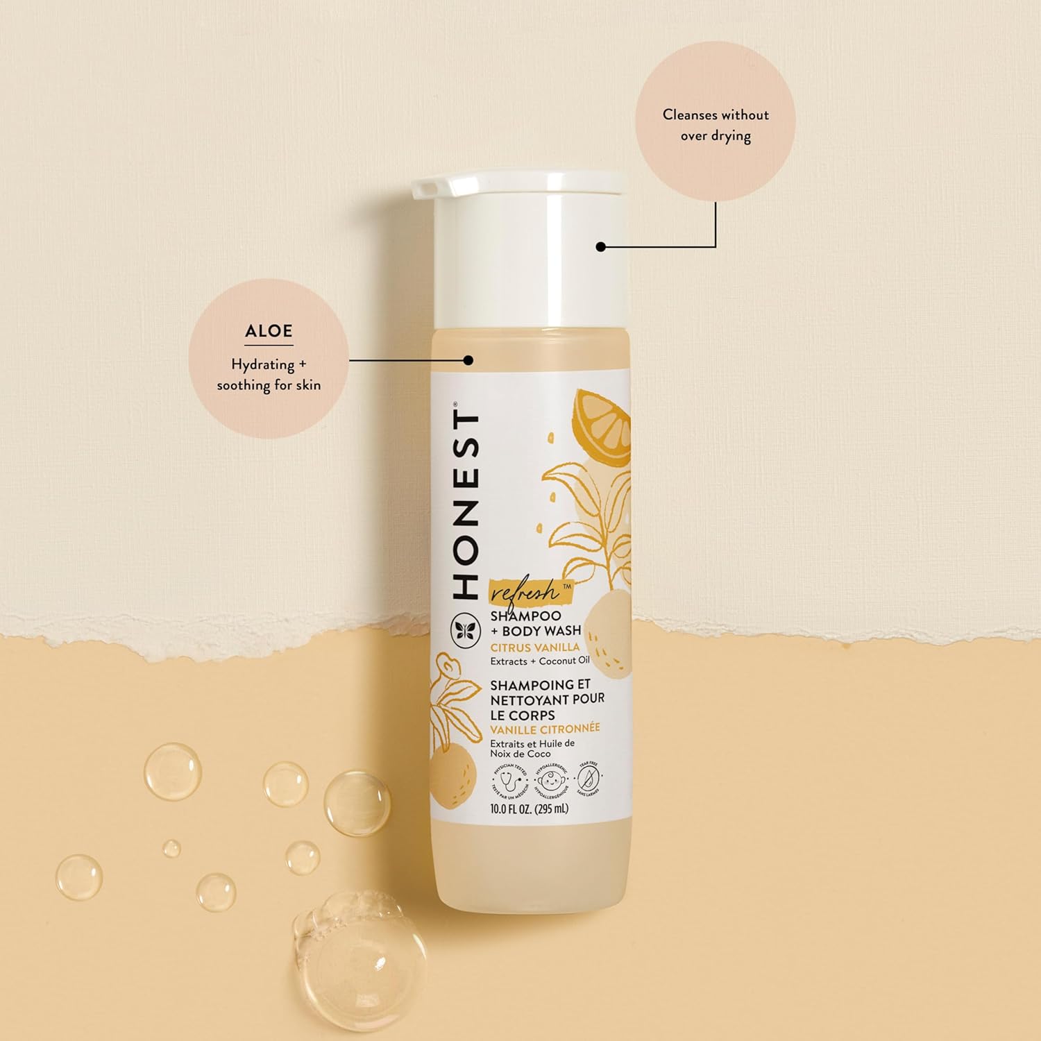 The Honest Company 2-in-1 Cleansing Shampoo + Body Wash | Gentle for Baby | Naturally Derived, Tear-free, Hypoallergenic | Citrus Vanilla Refresh, 10 fl oz