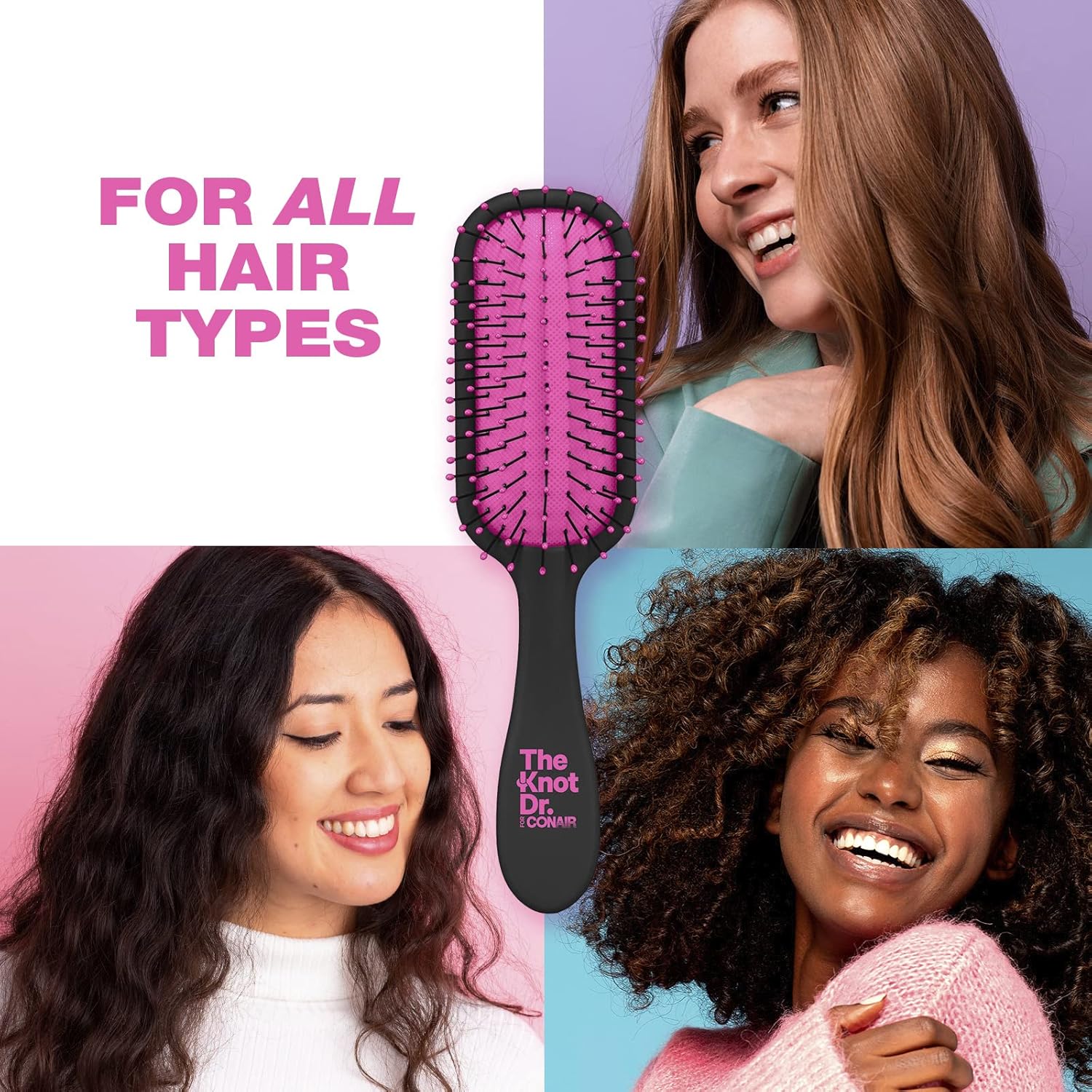 The Knot Dr. hair brush by Conair – Detangling hair brush – Travel Brush – wet brush – Removes Knots and Tangles in wet or dry hair- Pink