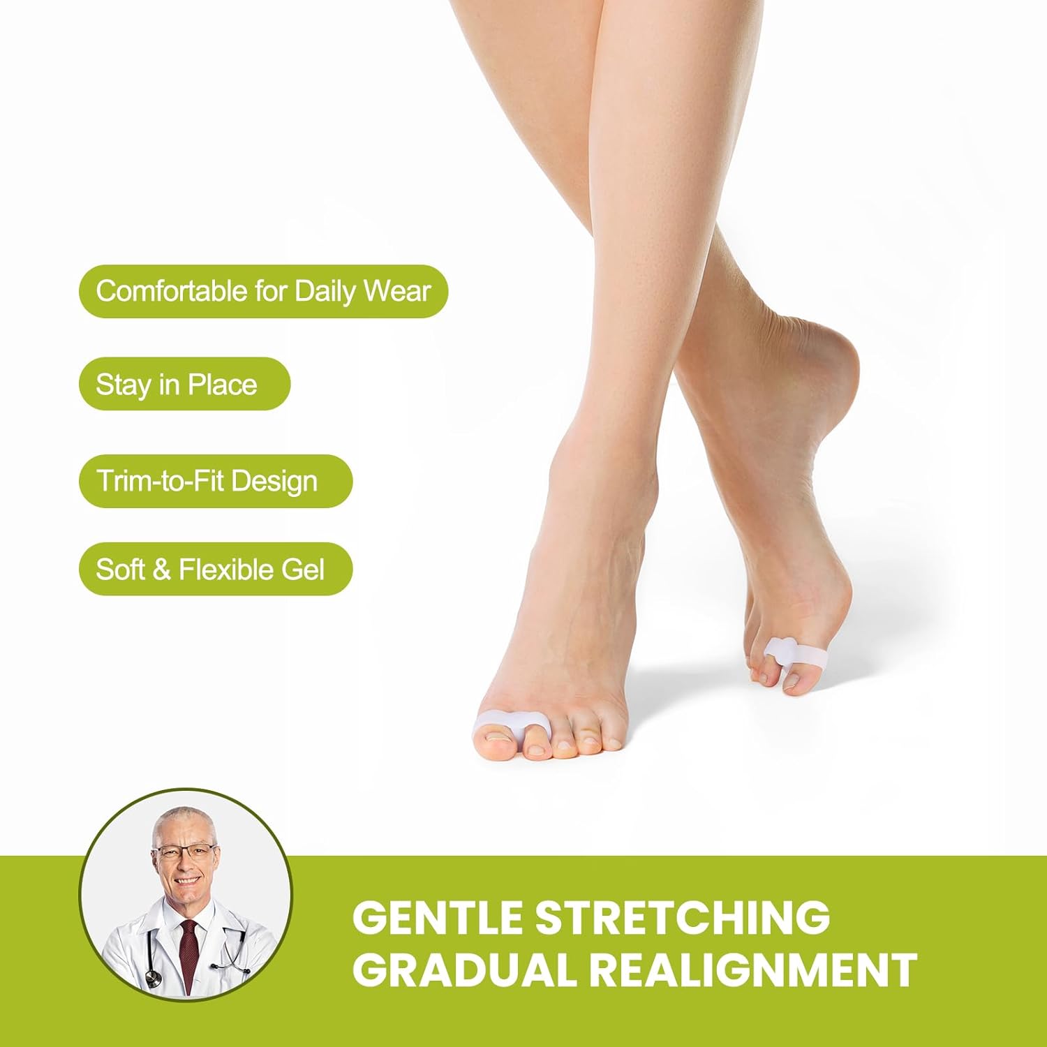 Toe Separators Bunion Corrector – 8 Pack Big Toe Spacers with 2 Loops, Suitable for Bunion and Overlapping Toes, Reduce Foot Pain(White)