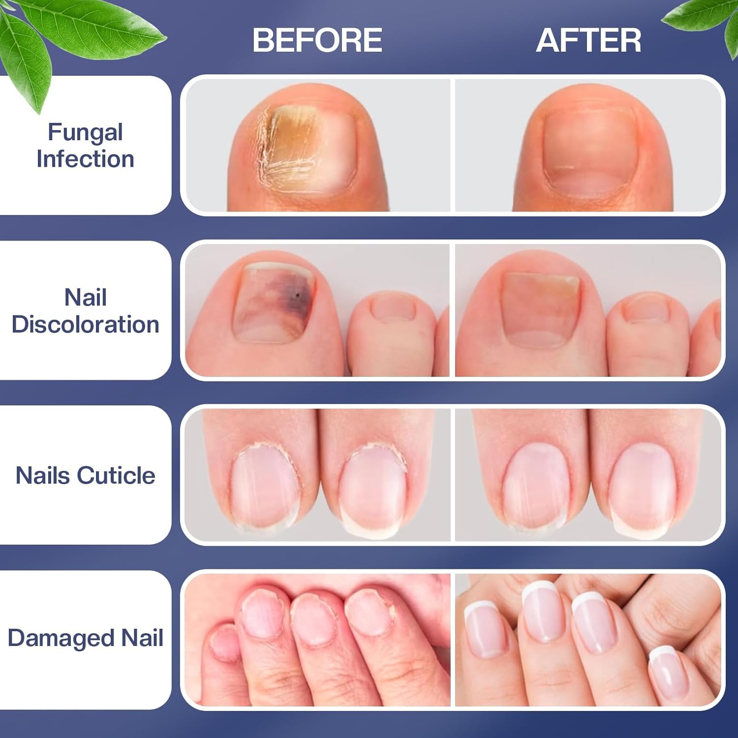 The super strong formula for AIMSEIZE Toenail Fungus Treatment can not only solve common problems, such as changing nail color, making nails thicker, and smoothing rough surfaces. It can also help natural nail repair. This means you can bid farewell to the discomfort caused by onychomycosis and other nail problems. Our toenail fungus treatment are effective in reducing or eliminating the symptoms of toenail fungal infections such as pain, peeling and deformity, and promoting healthy nail growth.