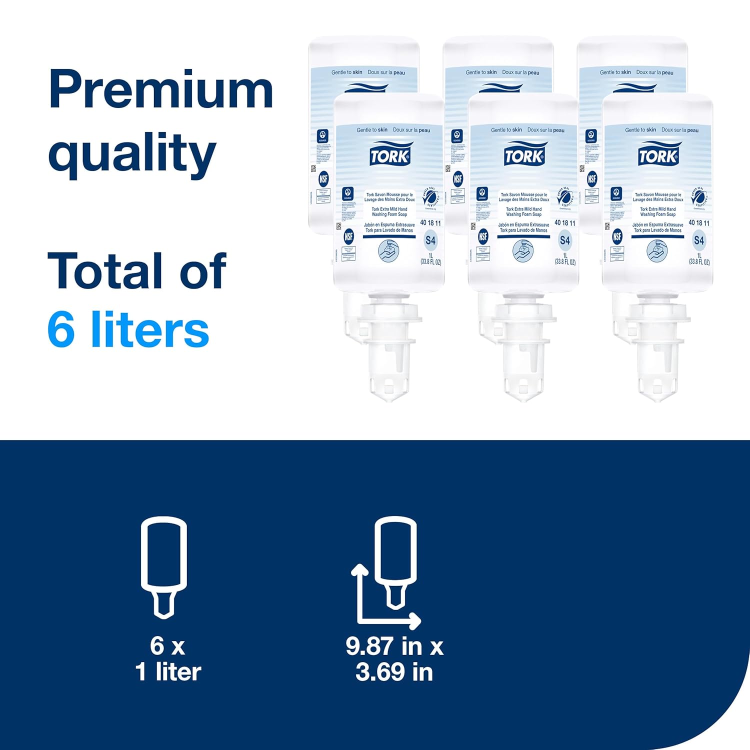 Tork Extra Mild Hand Washing Foam Soap S4, No Fragrance Added, 6 x 1L, 401811 (formerly 401211)