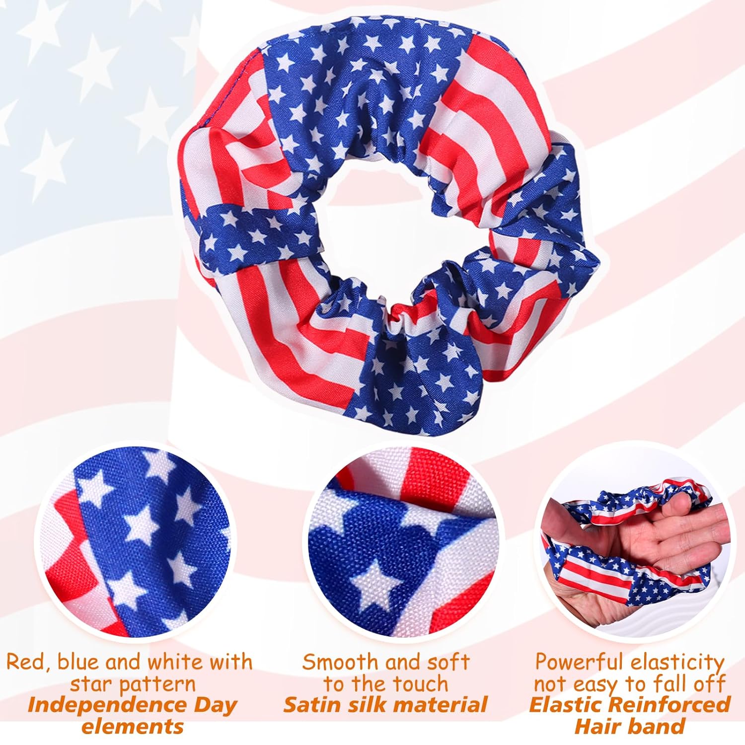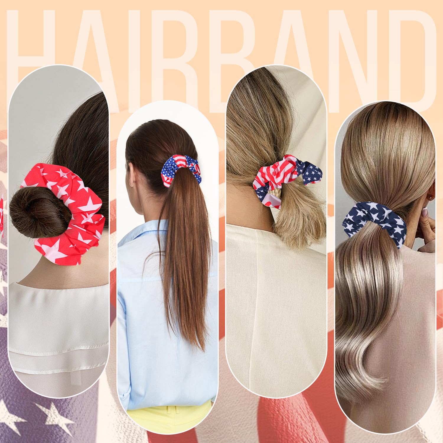 Package: 4pcs 4th of July Hair Accessories Scrunchies