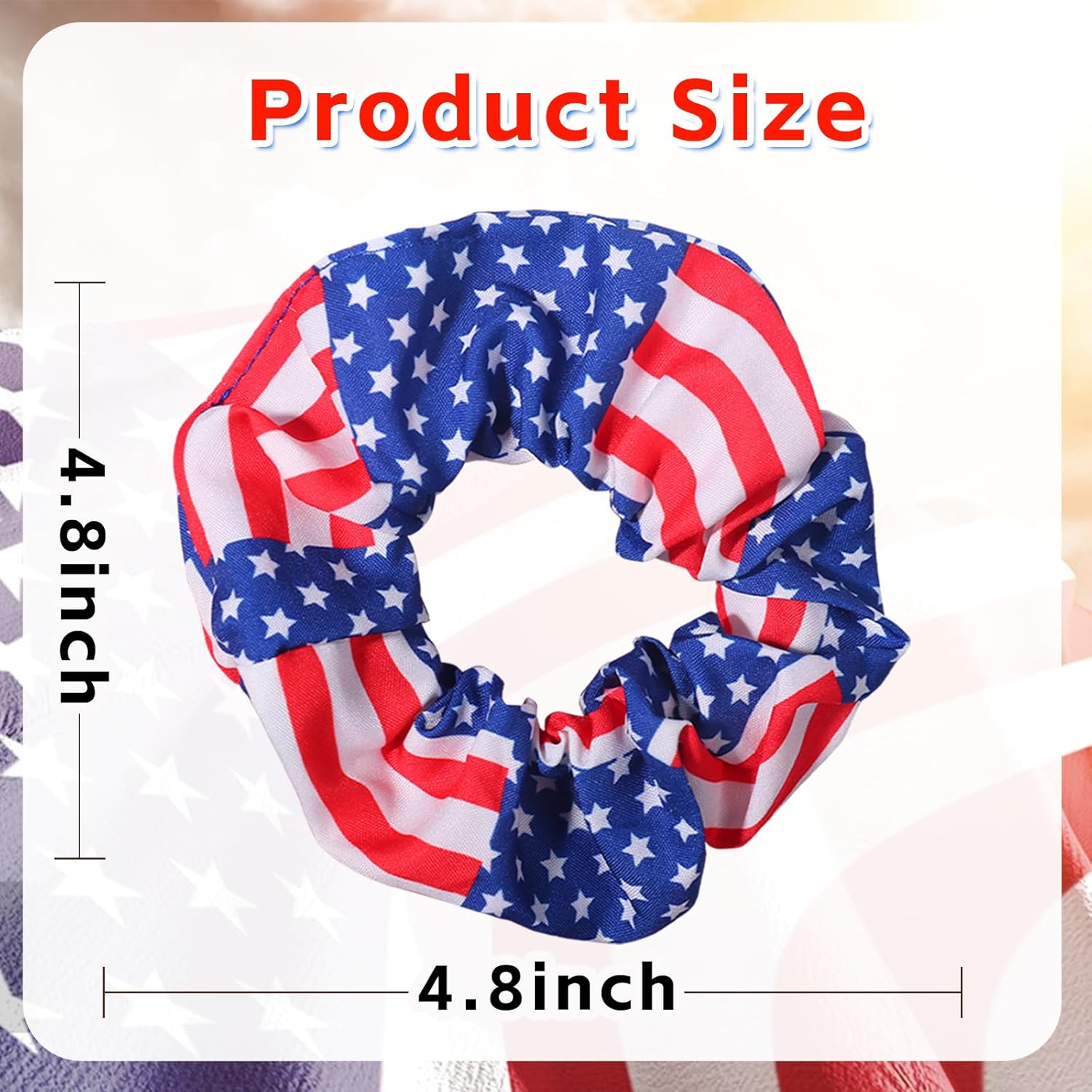 【Package】4pieces of 4th of July hair scrunchies with a diameter size in 4.8inch, available in mixed blue red white color, which will make you more attractive on independence day themed activities